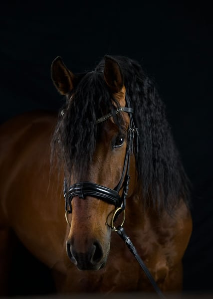 Duende is an 8-year-old stallion with a PSL father and a PRE mother from the famous breeding farm "Bohorquez" in Spain. What sets him apart from other Iberian horses is that he was bred for mounted bullfighting. He is elastic, fast, extremely attentive, and always in balance, ready to execute your commands. Duende has an exceptional character; a beginner can ride and gallop him without any problems (videos available). In the field, he is calm; he is a horse that wants to do everything right and gives 300% with every ride. He has a great talent for piaffe, passage, and extension and collection exercises. He is a master horse that teaches you how to apply aids in a sensitive way and also allows you to make mistakes. He is more spirited than lazy but without being overly electric, responding quickly to aids, moving off the leg, and always calling you when you walk past his box. He is only 8 years old and has an exceptional head, a horse that will bring you joy for many years. He is very gentle in the hand, performs exercises with a snaffle bridle, is very easy to handle, has no stallion behavior, and has good X-rays of the entire body. Videos and further information available upon request.