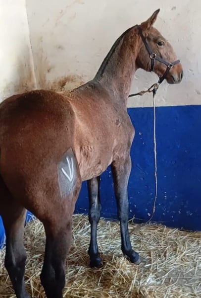 Potro PSL de este año 2025 mucha calidad en los tres aires y gran genetica. Cara acarnerada muy expresiva. Potro ideal para doma clásica, vaquera o equitación de trabajo.