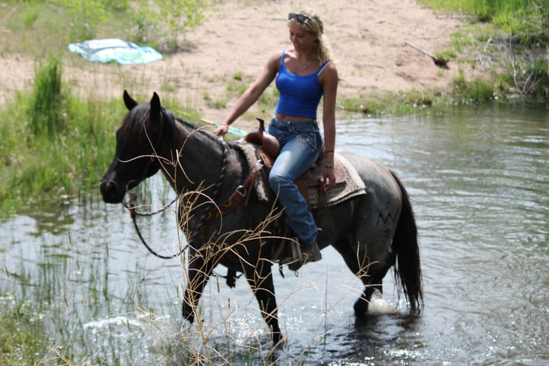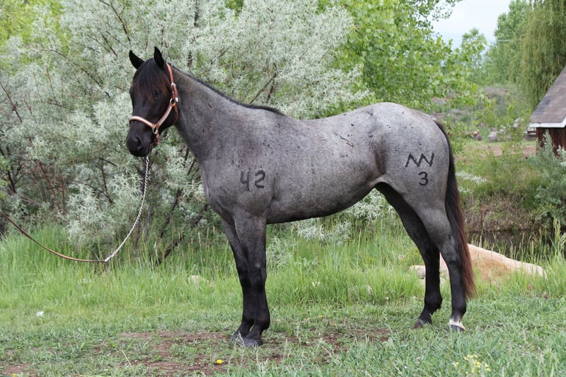 AVAILABLE ON ONLINE HORSE AUCTION AT www DOT MagicHorseAuction DOT com BIDDING OPEN NOW thru TUESDAY | JUNE 24th - BUY IT NOW AVAILABLE! *Final price will be determined on auction site* CONSIGNOR CONTACT INFO: Dynamite Horses 970-632-3644 LOCATION: Fort Collins, CO " MMB HEROS MAID — “Classy” Meet Classy, registered as MMB HEROS MAID—an absolutely stunning blue roan mare who embodies elegance, athleticism, and heart. With strong foundation training and a calm, intelligent demeanor, Classy lives up to her name in every way. This gorgeous mare moves with grace and presence. She is soft and collected in all three gaits—walk, jog, and lope—and has a phenomenal stop and rollback. She’s learning to respond to both leg and voice cues, making her a pleasure to ride for anyone looking to continue her development across multiple disciplines. Classy has excellent ground manners and a thoughtful, respectful attitude. She has been introduced to Parelli natural horsemanship and responds beautifully. She will side-pass up to the mounting block, perform a spin, free lunge, or lunge on a line with ease. She also walks, jogs, and lopes in-hand, showcasing her willingness and trainability. In addition to her western training, Classy has been lightly started in English. She’s working over cavalettis and is learning to carry herself correctly, building both muscle and confidence under a new type of saddle. Her versatility makes her a strong candidate for riders interested in competing or simply enjoying multiple disciplines. Classy has also seen the sights—she’s been ponied up into the mountains, taken on trail rides both in town and along the scenic Poudre Trail. She crosses water, steps over bridges, and handles traffic without issue. She’s steady around dogs, runners, bicycles, and strollers, making her a trustworthy partner for any adventure. Whether you’re looking for a flashy prospect with a great mind or a reliable mare with a foundation in both English and Western disciplines, Classy offers the best of both worlds. She’s a rare combination of beauty, brains, and athletic potential—all wrapped up in a striking blue roan coat. Don’t miss the chance to make Classy your next standout partner. She’s ready to shine in the arena, on the trail, or anywhere your journey takes you. Located in [Fort Collins] Contact: [970-632-3644] Videos available above