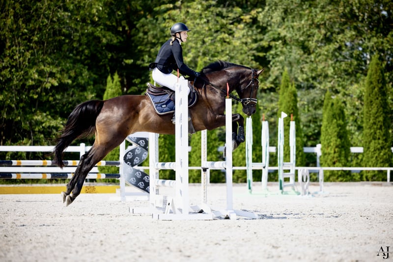 With a heavy heart, I am selling my gelding. Kamel is an eye-catching 12-year-old Małopolski breed horse. He stands at approximately 165 cm and is in regular sports training. He is the perfect horse to introduce to the world of sports. A junior rider has passed badges on him. At home, he has jumped single obstacles up to 120 cm, and at competitions, he has competed up to Class L, while calmly jumping 110 cm courses at home. He is precise in his jumps and does not want to touch the poles. In the corridor, he has jumped single obstacles up to 150 cm. He is well-trained in dressage and knows elements of Class N. He is pleasant and comfortable to ride and moves beautifully. He can perform transitions from canter to walk, shoulder-in, half-pirouettes, leg yielding, and flying changes. He does not kick, bite, or have any vices or bad habits. He is regularly trimmed and vaccinated, and his teeth are also maintained regularly. He has strong, healthy hooves and has never been shod. He is under constant care of a physiotherapist. On the ground, he is a cuddly type and knows various tricks. He can go out on trails both alone and with other horses. He is easy to handle and loads into the trailer without any issues. We want him to go to a good, loving home. The sale is due to moving up to higher competitions. Trial ride costs 100 PLN, which will be refunded upon purchase of the horse. For more information, please contact +48 724 206 200.