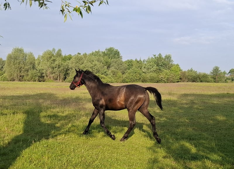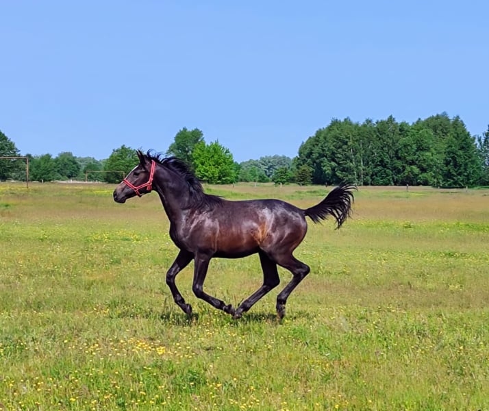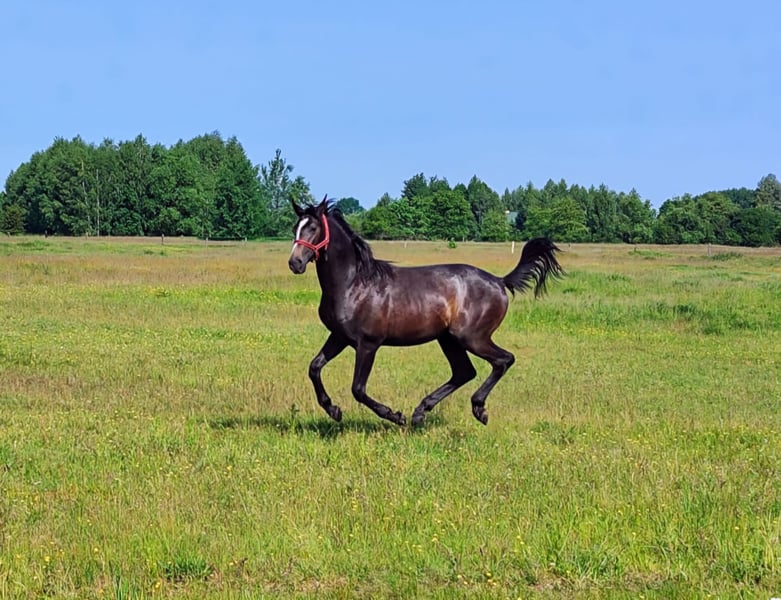 Colt PARYSS born: 04.03.2024 breed: Małopolska color: gray height at withers: 155 cm father: Agat młp (Barnaba – Armona by Decoration) mother: Preria młp (Dunaj - Panama by Tamerlan) PARYSS is a nice and large colt, of correct build with very good movement, brave, not flighty, and learns very quickly. A very good prospect for breeding and sports. Healthy, regularly trimmed and dewormed, taught to lift his legs and walk on a lead, tied in the stable. Raised in a pasture in a herd. Only to good hands, more information at phone number 696 471 626.