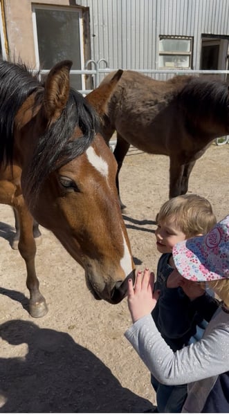 Ganz lieber Kerl - einfach vorbei kommen und kennenlernen ❤️ Geboren 05/2024 Gut gehändelt und ganz lieber, verschmuster Charakter. Lieb mit Kindern. Putzen, führen, anbinden, Hufpflege... Ist ganz normal für ihn. Darüber hinaus kann man ihn von der Herde weg führen ohne Gewieher oder Stress. Er hat auch schon Spaziergänge mit einem 2.Pferd gemacht und ist dabei für sein Alter sehr brav mitgegangen. Wer sich ein verlässliches Freizeitpferd mit klarem Kopf und besten Veranlagungen selbst groß ziehen möchte, ist hier richtig. Seine Gangveranlagung liegt bei Marcha Batida und Marcha Picada. Außerdem hat er aber auch einen schönen Galopp sowie Trab. Er steht für alle Sparten der Reiterei offen. Er hat volles Papier und vereint in sich Deutsch - Niederländische Zuchtlinien; Gangstärke, gutes Fundament und hervorragenden Charakter. Allgemein sind Mangalarga Marchadores als Familien - Sport - und Wanderreitpferde geeignet. Aufgrund der iberischen Vorfahren haben sie ein gutes Galoppiervermögen und eine hohe Begabung für Dressur. Rassetypisch ist die besondere Menschenbezogenheit und Leistungsbereitschaft