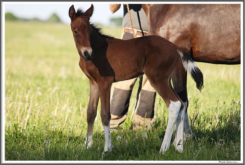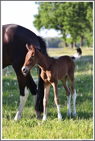 Agasche bvom Hartungshof , geb.am: 07.05.2024 ist eine besonders liebe, nette und unkomplizierte junge Dame, sie verfügt sehr elastische Bewegungen und eine für ein Gangpferd sehr gut gesprungene Galoppade. Ihre Gangveranlagung ist sowohl die Marcha Batida, wie auch die Marcha Picada. Agasche hat wie alle unsere Fohlen das Fohlen ABC gelernt und zeigt sich neugierig und interessiert an allem, was rundum passiert. Genetisch ist Agasche ein Braunschecke, hat aber lediglich 4 weiße Beine und einen schwarz / weiß "karierten" Schweif. Z.Zt. ist sie eine typische 1,5 Jährige bei der so einiges noch nicht so recht zusammen passt, ich bin mir aber sicher, dass sie sich zu einer harmonischen Stute weiter entwickeln wird. Sie lebt mit ca. 20 anderen Pferden zwischen 6 Monate und 29 Jahre alt in einer gemischten Gruppe, wo das Jungvolk spielt und die Erwachsenen wertvolle Erziehungsarbeit leisten. Alle unsere Pferde bekommen alle 7 Wochen Hufkorrektur, werden regelmäßig entwurmt und sind gegen Tetanus, Influenza und Herpes geimpft. Auch von ihr gibt es nicht so viele Bilder, weil ich 2024 und 2025 gesundheitlich heftig angeschlagen war.