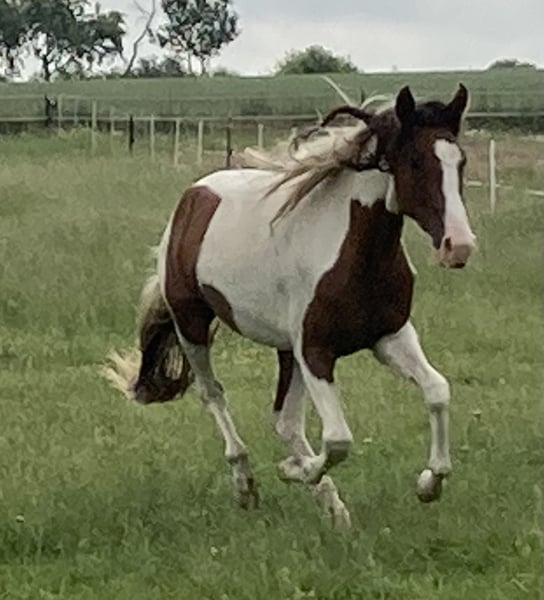 Gianna vom Hartungshof, geb.am: 24.04 2023 ist eine Schönheit: sehr schöne Scheckung gepaart mit korrektem Fundament, guten Exterieur und super guter Gangveranlagung. Dazu ein neugieriger Charme, dem man sich kaum entziehen kann, und ein kiebenswürdiger Charakter. Ihre Gangveranlagung ist Marcha Picada und Marcha Batida, dazu zeigt sie einen raumgreifenden Schritt und einen gut gesprungenen Galopp. Alles in allem wird sie ein bildhübsches, lernwilliges, im Umgang sehr feines und Bewegungsstarkes Pferd.