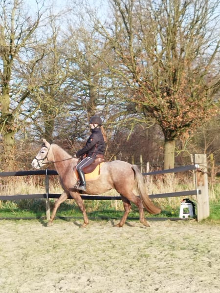 Ein lernwilliges, liebenswertes Pferd mit großem Potenzial. Seit dem dritten Lebensjahr eingeritten und bereits mehrere Ausritte im Gelände unternommen. Aufgrund von Zeitmangel jetzt zum Verkauf. Nicht für Anfänger geeignet. Klein, aber fein und sehr neugierig. Flache Gangart, daher ideal für Reiter mit Rückenproblemen.