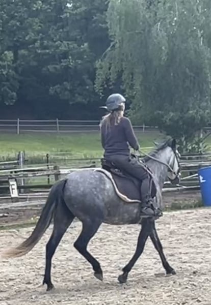 Loreena dit Eena jument pleins papiers Mangalarga Marchador, débourrée à 5 ans et demi pour de la balade. Part seule ou accompagnée. Pas peur des camions et tracteurs. Habituée aux chiens mais ne les aimes pas trop. .Embarque et voyage facilement. Vit en stabulation ou en boxe.. Beaucoup de Batida, mais potentiel au Picata. Gentille, intelligente et volontaire. Pas sur l'oeil mais encore verte. Ferrée et mise au travail sérieux en décembre 2025, longe, travail latéraux, galop... etc. Au mois d'avril, le travail de l'allure Picata sera fait par une professionnelle. Elle amble naturellement et facilement et nous l'avons habituée au trot pour sa musculation et son équilibre. Son matériel :bride est mord sur mesure , selle anglaise ou western sont aussi disponible. Très agréable sous la selle. Actuellement le prix peut être à la baisse si bonne place. Echange possible pour un hongre plus petit de 1 à 5 ans. (Idéalement de 140-143cm à l'âge adulte ou si éleveur reprise d'un de ses poulains hongres.. Toutes discussions possible. Faire un offre.