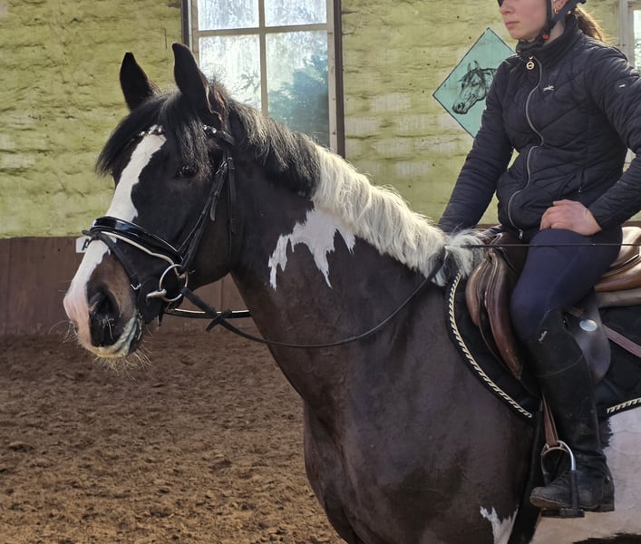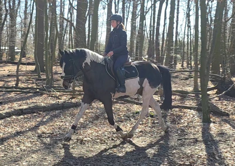Clooney – sympathischer Scheckwallach mit tollen Nerven. Clooney überzeugt durch sein ausgesprochen freundliches Wesen und seine angenehme Art im täglichen Umgang. Er ist sehr menschenbezogen, brav und unkompliziert und zeigt sich auch in neuen Situationen erstaunlich gelassen und nervenstark. Unter dem Sattel präsentiert sich Clooney mit ansprechenden Grundgangarten und einem sehr angenehmen Reitgefühl. Besonders positiv fällt seine ruhige und ausgeglichene Art auf – für sein Alter zeigt er sich bereits bemerkenswert abgeklärt. Auch erste Sprünge meistert Clooney aufmerksam und mit sichtbarer Freude. Mit weiterer Förderung kann er sich daher gut zu einem Partner für kleinere Spring- oder Vielseitigkeitsaufgaben entwickeln. Im Gelände zeigt sich Clooney brav, zuverlässig und entspannt und genießt die gemeinsame Auszeit außerhalb des Reitplatzes sehr. Damit eignet er sich hervorragend als vielseitiger Freizeitpartner, der seinem Reiter sowohl im Alltag als auch bei Ausritten viel Freude bereitet. Im täglichen Handling ist Clooney absolut unkompliziert – Verladen, Schmied und auch Scheren sind problemlos möglich. Ein sehr sympathischer junger Wallach, der durch seine Nervenstärke, sein freundliches Wesen und seine Vielseitigkeit überzeugt und seinem zukünftigen Besitzer viel Freude bereiten wird. Bei uns steht er nachts in der Box und tagsüber in einer Wallachgruppe draußen. Er war aber auch Offenstallhaltung und Weidegang gewöhnt. 6j WB Wallach, 1.65m Klinische Aku vorhanden Videolink: https://youtu.be/2gdJFO334cQ?is=xeszbgTMWuCBM8IU Preisrahmen 5000- 10000€ Noch mehr Fotos, Videos und kleine Einblicke in den Alltag unserer Pferde gibt’s auf Instagram: [maresi_lange]. Schauen Sie gern vorbei und lernen Sie unsere Vierbeiner schon vorab ein bisschen kennen. You can find more photos, videos and little insights into the everyday life of our horses on Instagram: [maresi_lange]. Feel free to take a look and get to know our horses a bit better in advance.“ Weitere Pferde auf meiner Homepage MaresiLange.de oder auf Anfrage. Die Beschreibung des Pferdes beruht auf subjektiven Eindrücken und Erfahrungen unsererseits und ist keine Beschaffenheitsvereinbarung und Zusicherung von Eigenschaften. Probereiten erfolgt auf eigene Gefahr. Verkauf erfolgt im Auftrag. Für das Vorstellen/ Probereiten des Pferdes erlauben wir uns eine Aufwandsentschädigung in Höhe von 30 Euro zu berechnen. Diese wird natürlich bei Kauf des Pferdes verrechnet.