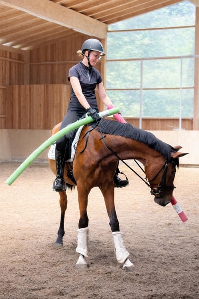 Nuestra pequeña rompecorazones, "Silent Touch", busca su hogar de 5 estrellas a través de este anuncio. Adquirimos esta yegua de cría versátil y prometedora en la subasta de potros de Westfalia y ahora ha alcanzado la edad para su vida como caballo de doma. Actualmente mide 1,67 m y, para su edad, está muy desarrollada físicamente. Silent Touch desciende de Sir Escolar, con madre de Real Diamond x Akzent II. Aquí se ha cruzado sangre de alto nivel en doma con una línea de salto exitosa. Esto también se refleja en la versátil habilidad de la yegua, lo que la hace muy interesante como "Hunter". Tiene tres pasos básicos muy buenos, realiza un excelente salto en libertad y también muestra mucho talento en sus primeros saltos bajo la jineta. En el campo, va de manera obediente sola o en grupo. Es muy cariñosa y preferiría vivir con sus humanos. Es muy curiosa y un auténtico monstruo de mimos. Con la formación adecuada, también podemos imaginárnosla en el ámbito terapéutico. Debido a su descendencia altamente interesante, también es una opción para la cría. En verano de 2025, ya la hemos iniciado suavemente en la monta. Nos alegran las consultas amables y podemos concertar una cita para que la conozcan. Para más información, también puede llamarnos al +49 173 7359633.