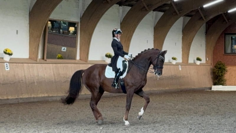 - Langbeiniger Dunkelfuchswallach mit drei überragenden Grundgangarten - Mit Talent und Tragkraft für die versammelnden Lektionen - Dabei angenehm zu sitzen und von Damenhand zu reiten - Zahlreiche Siege und Platzierungen bis Dr. S **** - Grand Prix platziert - Silberglanz ist im Gestüt Ganschow geboren, aufgewachsen und schonend ausgebildet