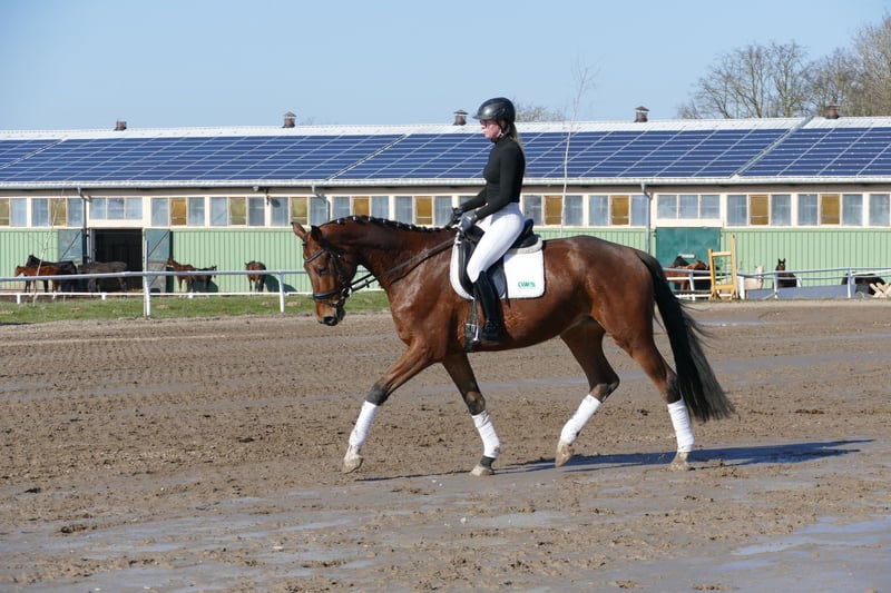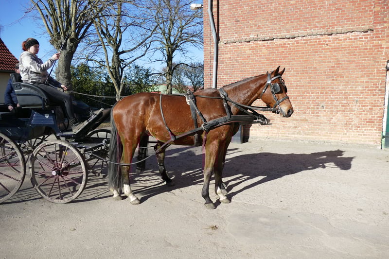 Mambo: - Langbeiniger Reitpferdetyp mit besonders schönem Seitenbild - Mit drei reell guten Grundgangarten - Leichtrittig und sitzbequem - Im Umgang, sowie in der Arbeit mit wunderbarem Interieur - Ein- & Zweipännig gefahren - Mambo ist im Gestüt Ganschow geboren, aufgewachsen und schonend ausgebildet