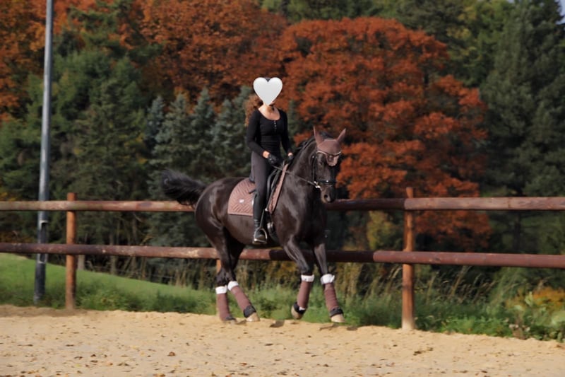 Our beautiful ten-year-old black mare is, with a heavy heart, looking for a new home. Mirabell is a horse that gives everything for her person and strives with all her soul to please her rider. That’s why we wish for someone who approaches her with love, calmness, and experience, and gives her the attention she deserves. Mirabell is a sensitive, strong-willed mare who picks up on her rider's mood very accurately. With a calm and experienced person by her side, she shows herself to be motivated, cooperative, and full of joy – a horse that would go through fire for the right person. She particularly enjoys jumping and has a lot of potential in this discipline; in dressage, she is steadily developing and is additionally worked on once a week by an experienced rider for corrections. She is also a reliable companion in the outdoors, going along calmly, and she responds very well to lunging. She hasn’t really gained much competition experience yet, as it hasn’t been possible for us time-wise – however, she has the abilities for it. Mirabell prefers to be in an open stable with plenty of movement, but she also copes well with box housing and regular turnout. She is currently in an all-mare herd. She is barefoot, well-behaved with the farrier, loads easily into a trailer, and is, of course, well cared for: regularly dewormed, vaccinated, and her teeth are also checked regularly. In everyday life, Mirabell is uncomplicated – she willingly gives her hooves, allows herself to be tied and groomed, and loves spending time with her person. It is especially nice that she enjoys being petted and cuddled. As she is sensitive and takes on her rider's mood, Mirabell is not suitable for beginners! Her future rider should weigh no more than 70 kg and be willing to approach her with calmness, patience, and experience. For us, the right home is more important than anything else – therefore, it is clear: home before price. To ensure that only serious interest exists, we charge €20 for trial riding, which will, of course, be deducted from the purchase price. We will only let Mirabell go to the best hands and wish for someone who loves her just as much as we do. For serious inquiries, we are happy to send videos and further information – and we hope that she will soon find the person with whom she can share her heart.