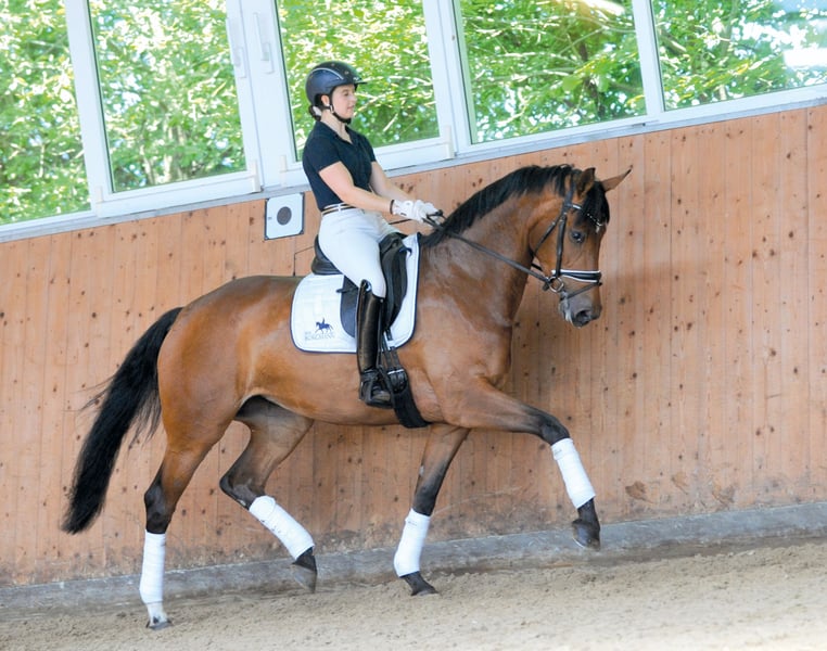 Piekfein is a very sweet and incredibly beautiful mare that I am reluctantly offering only to the best new owners due to health reasons. She has been shown and placed in competitions from lead rein classes up to L level. Since I personally have no ambitions to compete, she has only participated in a few shows. She is comfortable loading onto a trailer (preferably a transporter), is well-behaved at the blacksmith, and prefers women. She is often quite skeptical around men. She loves being groomed and petted. She previously suffered a mild tendon injury on her left front leg (2024), but this no longer affects her thanks to orthopedic shoes. Thanks to her excellent pedigree and her good character, I could also see her as a suitable broodmare—provided she is not exploited solely as a breeding machine! She can perform up to M level dressage, but since I have only ridden her recreationally, some time will be needed to unlock her full potential. I could also imagine a mother-daughter pair, as she is very well-behaved and easy to ride for my 14-year-old daughter. Test rides only with serious interest! No traders!