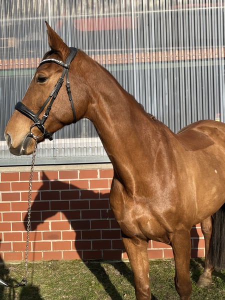 Mecklenburger Stute (2010) – Hannoveraner Zuchtbucheintragung – erfahrene Zuchtstute & feines Reitpferd Zum Verkauf steht meine typvolle Mecklenburger Stute Fürstin Dejana, geboren 2010, mit einem Stockmaß von 166 cm. Sie ist als Zuchtstute im Hannoveraner Verband eingetragen. Dejana hat bereits mehrere Fohlen bekommen, zuletzt 2024 (dieses befindet sich ebenfalls noch in meinem Besitz). Laut Vorbesitzer verliefen alle Geburten stets unkompliziert und problemlos. Sie ist eine zuverlässige, erfahrene Mutterstute mit guter Aufzuchtleistung und eignet sich somit weiterhin für die Zucht. Ich habe sie ursprünglich als Zuchtstute übernommen und anschließend wieder als Reitpferd angeschoben. Unter dem Sattel zeigt sie sich fein an den Hilfen, motiviert und mit angenehmem Go. Stutentypisch hinterfragt sie gelegentlich, bleibt dabei jedoch jederzeit händelbar und fair. Mit klarer, ruhiger Führung arbeitet sie sehr schön mit. Im Gelände war ich bisher überwiegend in Begleitung unterwegs, daher kann ich zum Alleinausreiten keine verbindliche Aussage treffen. Absolut vorbildlich ist sie beim Verladen – ich fahre im Winter nahezu täglich alleine mit ihr zur Reithalle, sie geht problemlos und selbstständig auf den Anhänger. Der Verkauf erfolgt ausschließlich aus Zeitmangel. Sie wird nur in wertschätzende Hände abgegeben, die ihr weiterhin eine Aufgabe geben – ob in der Zucht oder als Reitpferd. Ein probereiten ist natürlich möglich. Um reittourismus entgegen zu wirken behalte ich mir vor 25€ für das probereiten zu nehmen das Geld wird bei Kauf selbstverständlich verrechnet. Eine AKU kann jederzeit auf eigen Kosten und mit eigenem oder unserem Tierarzt erfolgen. Ebenfalls könnten ihre beiden Sättel (Ikonic Dressursattel und Prestige springsattel) mit erworben werden. Platz vor Preis Preis ist vb Bei ernsthaftem Interesse freue ich mich über eine Kontaktaufnahme mit kurzer Vorstellung. Gerne über WhatsApp unter 017622663586