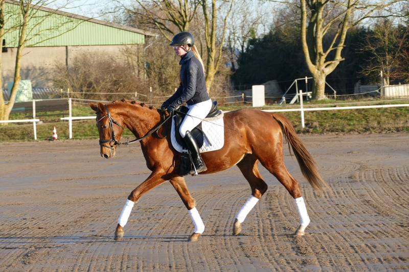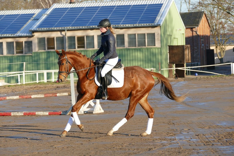 Mira: - Characterful Mecklenburg mare in a smaller build - With three fundamentally good gaits - Light in the hand and easy to sit - With a genuinely honest character - Mira was born, raised, and gently trained at Ganschow Stud