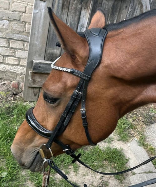 We have a wonderful mare with a very special character – calm, relaxed, motivated, and always eager to perform. She has been trained and raised very gently. She was kept in an open stable 24/7 until her fifth year. She is absolutely easy to ride and truly talented over fences. Therefore, she is also suitable for talented young riders looking for a horse that can grow with them and be competition-ready. She is completely reliable and brave both in the terrain and at the jumps. For this reason, she is also well-suited for eventing. Initially, a 100% leasing arrangement for her use is possible, with a later option to purchase.