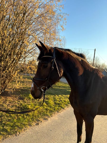 Schicke 5 jährige Stute von Dia Corrado zu verkaufen. Wir verkaufen eine intelligente, brave Stute von Dia Corrado x Clinton I. Sie ist seit Anfang des Jahres angeritten und macht super Fortschritte und hat keinerlei Unarten. Im Gelände ist sie problemlos in der Gruppe zu reiten. Halbbruder Mutterlinie gekört, sowie Halbschwester aus Mutterlinie 1.40 m plaziert. Bei Interesse bitte WhatsApp 01713443424