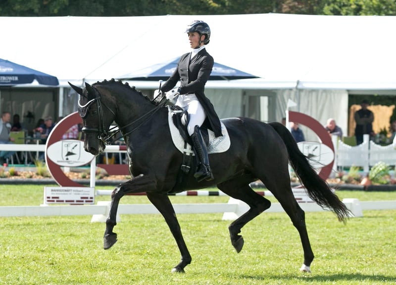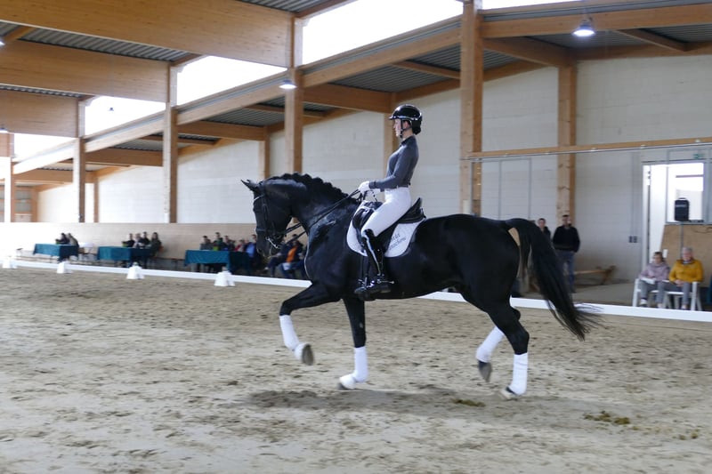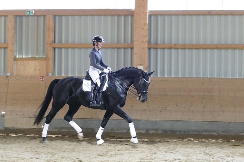 Donquita: - Compact dressage mare with quality in all three basic gaits - Very comfortable seat and flowing movement through the body - With a positive work attitude and excellent collection willingness - Gentle and well-mannered both on the ground and under saddle - Handled by a lady rider - Numerous wins and placings up to Dr. S* level - Donquita was born, raised, and carefully trained at Ganschow Stud