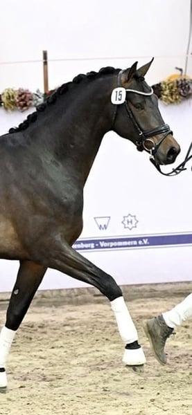 For sale: Mecklenburg Warmblood stallion – a promising dressage prospect We are offering a stunning Mecklenburg Warmblood stallion, born in 2023. This black-brown young stallion impresses with his elegant appearance and exciting potential in dressage. Recently awarded as the best Mecklenburg dressage stallion at the Mecklenburg Days The young stallion captivates with his attractive conformation and pleasant temperament. Please feel free to contact me for further information or if you are interested.