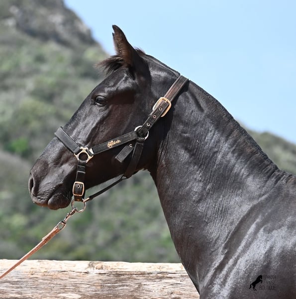 Harmoniously built Menorcan young mare with a special feature