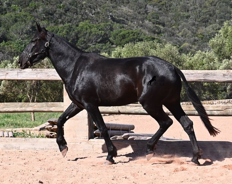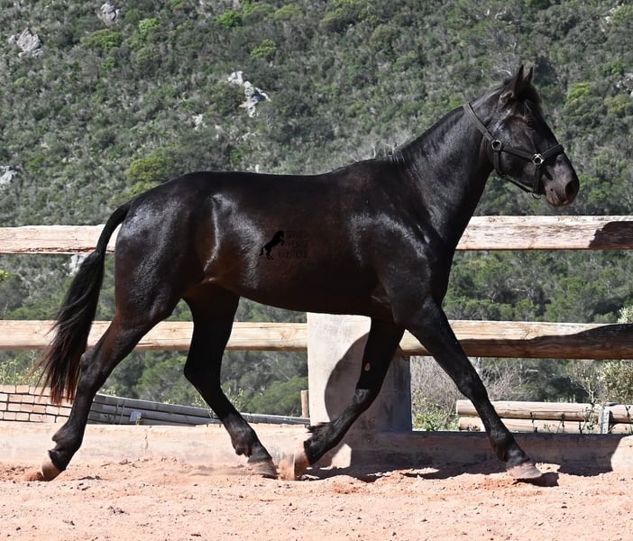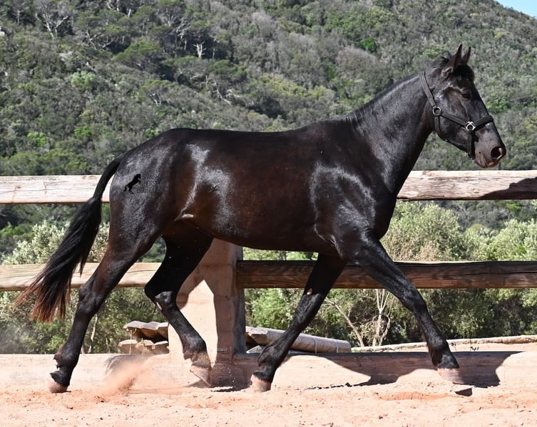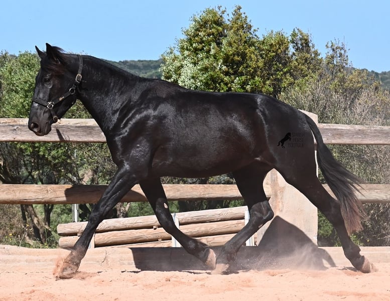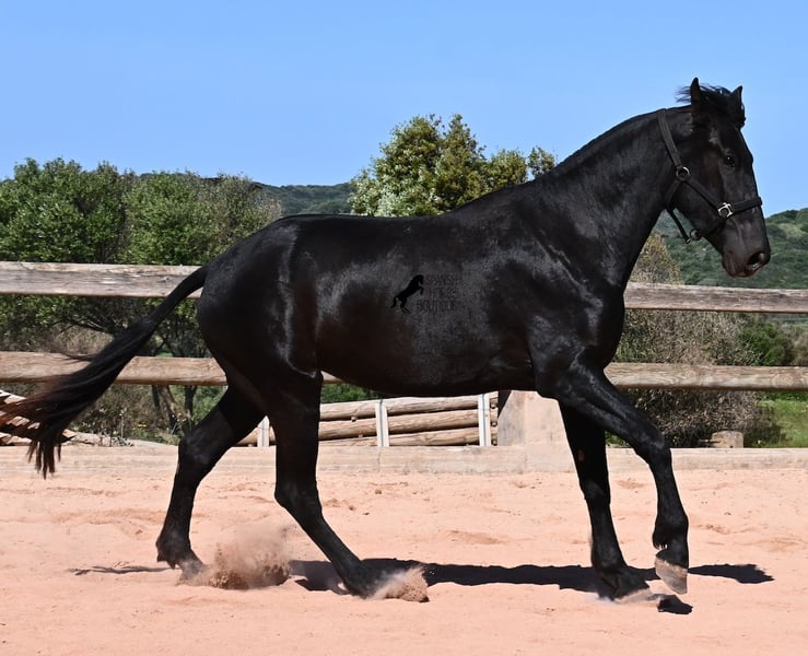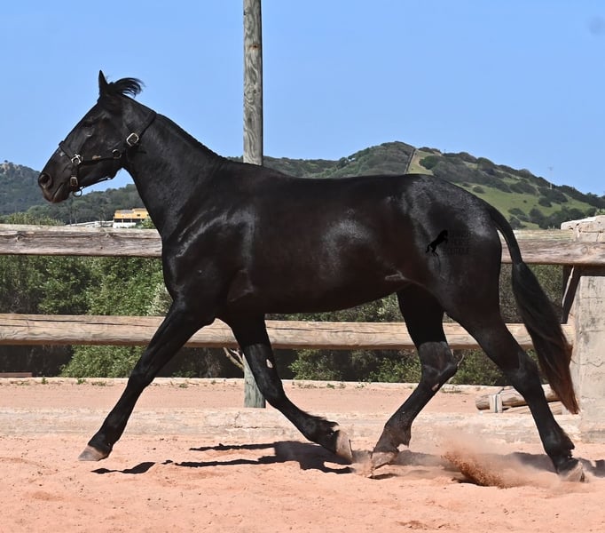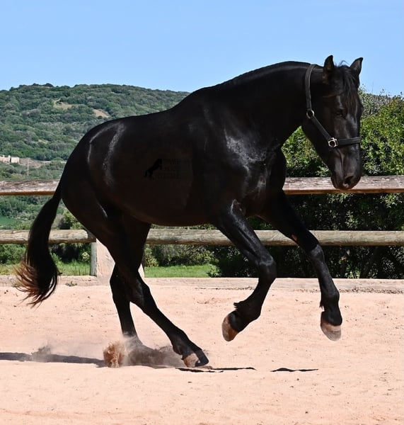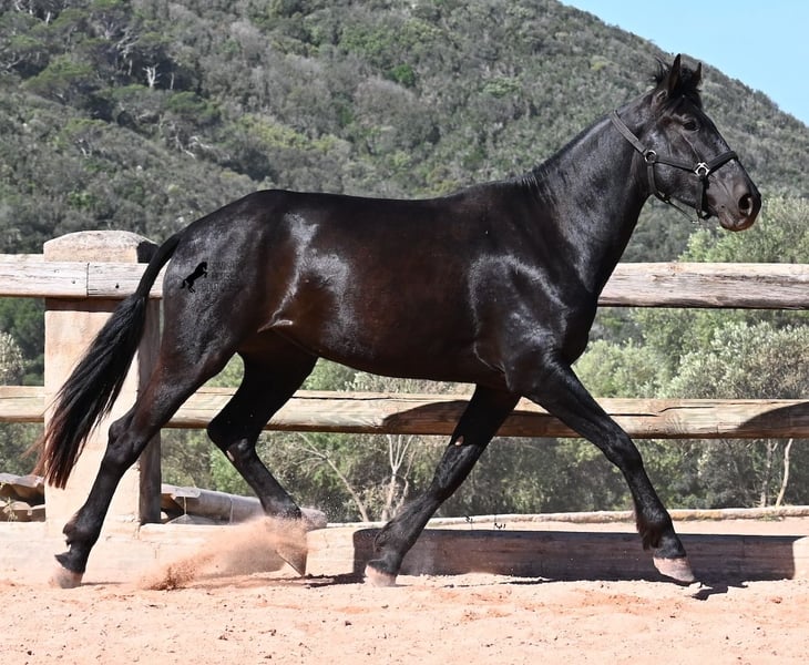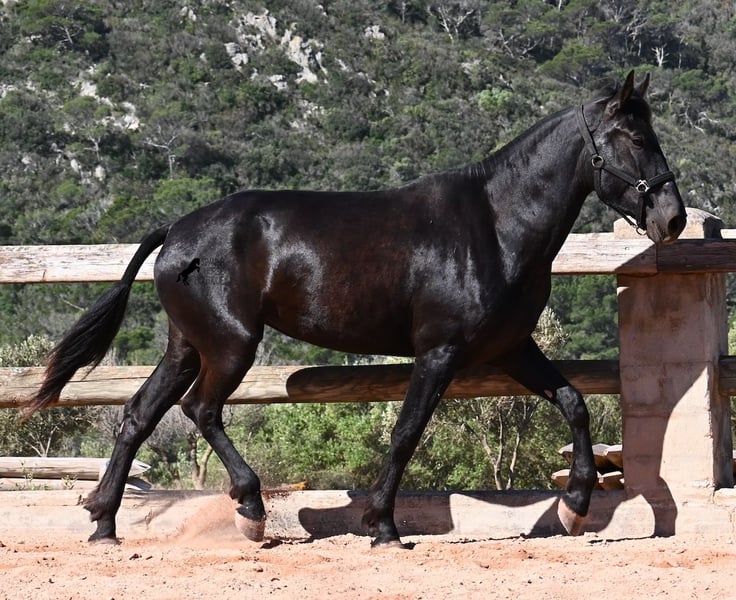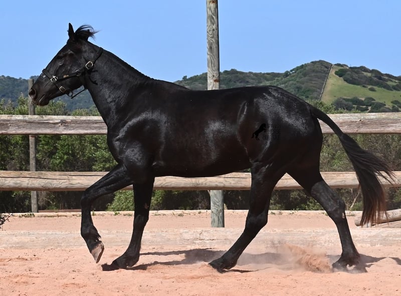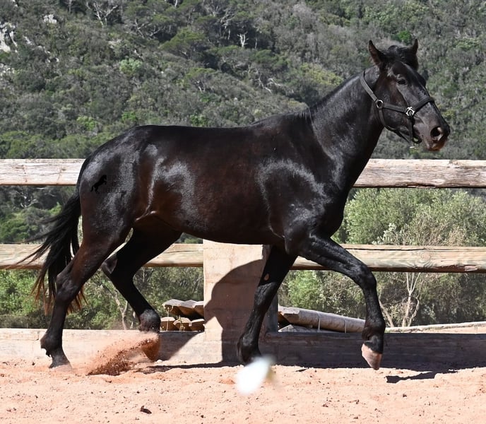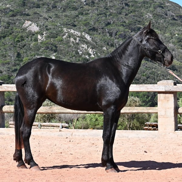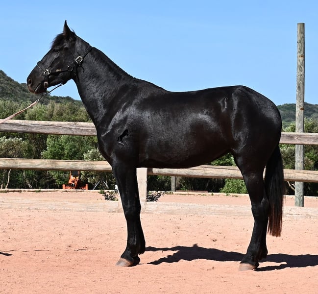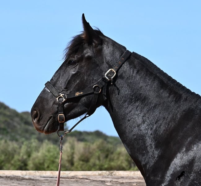 Diese 2023 geborene, reinrassige Menorquinstute, will definitiv hoch hinaus! Denn gerade mal 3 Jahre alt, misst sie schon erstaunliche 167cm und wird demnach bis sie ausgewachsen ist, definitiv an der 170cm Marke kratzen. Ganz stolz und lebenslustig fegt sie über den Platz und zeigt ihren charmanten Esprit. Dabei bewegt sie sich auch wirklich gut und mit ihrem Charakter und der Bewegung, wird sie später nicht nur für den Freizeitbereich, sondern auch für die Dressur und Working Equitation interessant. Ihr Papa ist ein herausragender Hengst, denn 3 (!) seiner Nachfahren wurden RASSECHAMPION! Also hat diese Stute ganz edle Geschwister und ist bestimmt auch für Züchter interessant, denn sie ist mütterlicherseits auch noch ein Abkömmling von BUYO, einem der Gründerväter der Rasse. Sie lebt in der Herde in 24h Robusthaltung, ist daher bestens sozialisiert und abgehärtet, dank des rauen Klimas auf Menorca. Im Umgang ist sie sehr aufmerksam und absolut artig und gesetzt, ganz ohne Jungpferdeflausen. Sie ist nun im idealen Alter, um mit ihr die Arbeit zur Vorbereitung als Reitpferd anzufangen. Es besteht auch die Möglichkeit vom Beritt auf Menorca. Sie ist noch nicht gekört, kann aber auch gerne angekört werden, für all jene, die Zuchtziele haben. Sie hat keine weißen Abzeochen und ist mit ihrer Größe eine Rarität bei den Menorquin. Aktuell steht sie auf Menorca! Videos und Abstammung gerne auf Anfrage. Gerne organisiere ich vor Ort eine AKU, Beritt, Transport oder auch ihre Reise, sollten Sie persönlich zum Anschauen kommen. Details dazu gerne auf meiner Seite oder im Gespräch. Saludos aus Spanien