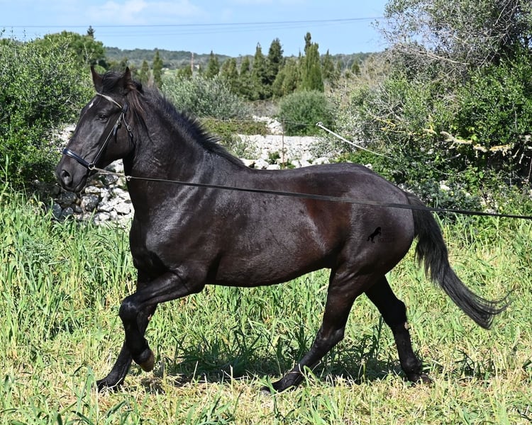 Diese 2021 geborene, reinrassige Menorquinstute, ist mit 167cm noch nicht ausgewachsen und jetzt schon eine große Rassevertreterin für eine Stute. Das schöne ist, dass durch ihre Adern ganz alte Linien des Menorquin fließen, um diese nicht zu verlieren und dennoch ist sie im sportlich-barock stehenden Typ, wie es heutzutage vielerorts gewünscht wird. Die Besitzer haben sie eingefahren und schon ein paar Mal auf sie draufgesetzt, aber richtig angeritten ist sie noch nicht- es besteht aber die Möglichkeit, sie vor Ort anzureiten! Im Jährlingsalter wurde sie auf der Zuchtschau vorgestellt und hat sehr gute Noten bekommen. Durch das Erlebnis kennt es sie auch longiert zu werden, an neuen Orten mit fremden Pferden zu sein und verladen klappt dadurch auch super. Die Idee war, dass sie eine Zuchtstute werden sollte, sie ist auch gekört, jedoch haben sich die Besitzer nun entschieden eine andere Nachzucht aufzuziehen und ihr einen Platz zu suchen, wo sie genau so liebevoll betreut wird. Die Besitzerin sitzt oft Stunden bei ihr auf der Koppel, es wird heftig geknuddelt und abgeknutscht, wobei sich selbstverständlich auch um das liebliche Wohl gekümmert wird, wie es bei Pferden sein soll. Sie geht barhuf, steht 24h draußen in Robusthaltung in Stutengesellschaft und ist dadurch sehr widerstandsfähig und bestens sozialisiert. Eine wirklich liebe Stute, mit toller Größe, einwandfreiem Charakter und bestimmt leicht einzureiten. Videos und Abstammung gerne auf Anfrage. Ihr Standort ist Menorca. Gerne organisiere ich vor Ort eine AKU,Transport oder auch ihre Reise, sollten Sie persönlich zum Anschauen kommen. Details dazu gerne auf meiner Seite oder im Gespräch. Saludos aus Spanien