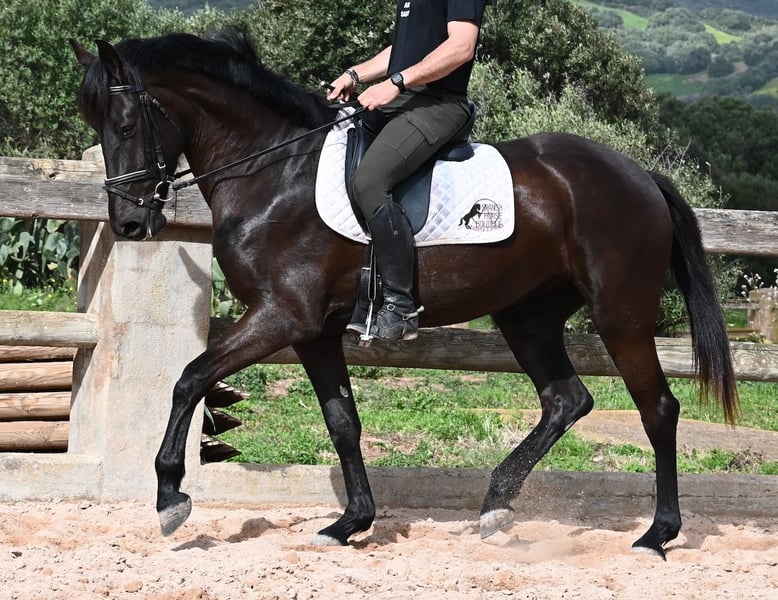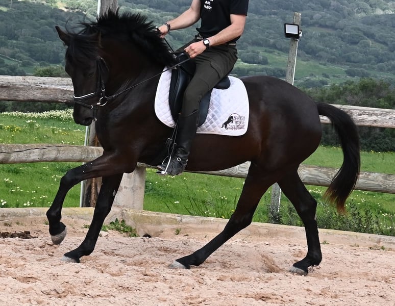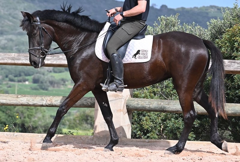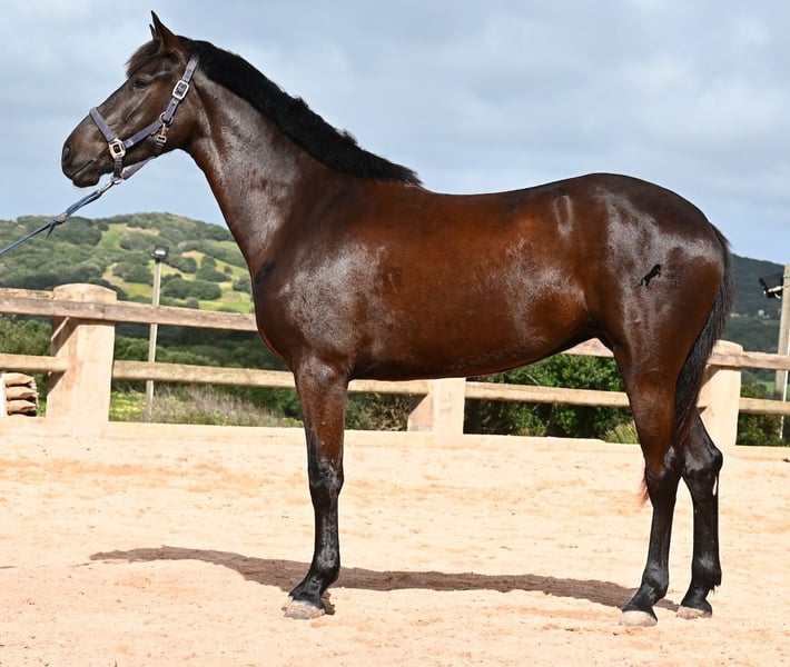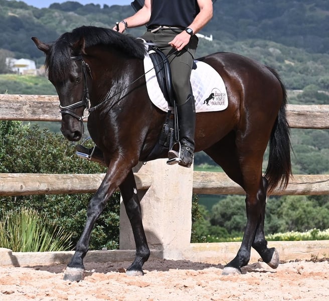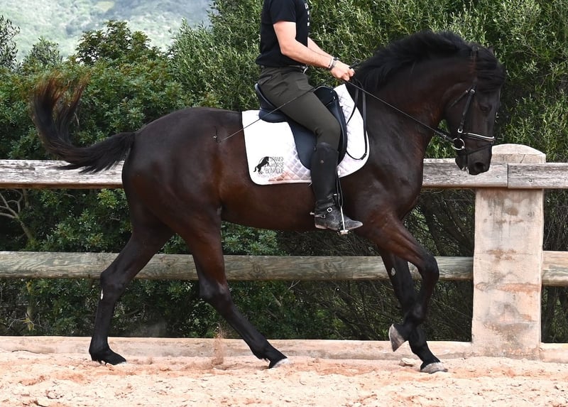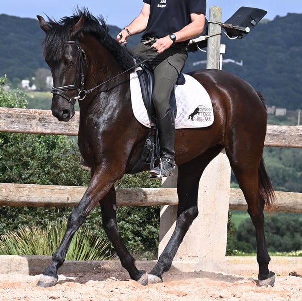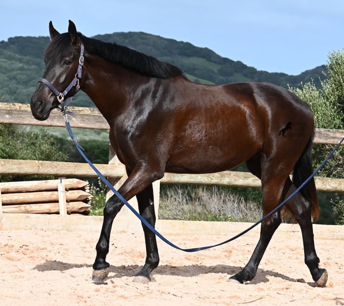 This purebred Menorcan mare, born in 2021, stands at 165cm, making her not only very tall for her age but also possessing a correspondingly big heart! She is an utterly charming, sweet mare, deeply relaxed in the typical Menorcan way, and couldn't be more agreeable. In handling, she is a heart of a horse, and under saddle, she always aims to please her rider. Due to her size, she was given a bit more time to grow, so she was only introduced to the rider in winter 2024 and is now being gently further trained. She is eager and absolutely well-behaved, as if she has been a riding horse for years. Her training level corresponds to that of a young horse, so sometimes she still follows her nose for a few steps, but she is increasingly accepting contact and learning to carry herself more. She goes barefoot without issue, was raised in a herd in robust conditions, and has been stabled since the start of her training. She is approved for breeding but has not yet had any offspring. However, if you wish to breed a foal from her, that option is available. Even though her veins carry the old lines of the Menorcan, where horses were not as tall and more baroque, she is very athletic and will still grow a few more centimeters! There is an option for training in the English style or Horsemanship on-site! She is currently located in Menorca! Videos and pedigree available upon request. I am happy to organize a vet check, training, transport, or even your trip if you wish to visit her personally. Details are available on my page or in conversation. Greetings from Spain