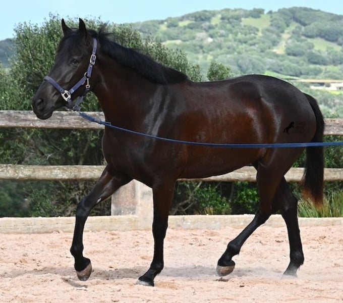 Diese 2021 geborene, reinrassige Menorquinstute, ist mit 165cm nicht nur schon sehr groß für ihr Alter, sie hat auch das entsprechend große Herz! Eine ganz entzückende, liebe Stute, die typisch Menorquin tiefenentspannt ist und nicht lieber sein könnte. Im Umgang ein Herz von einem Pferd und unterm Sattel will sie ihrem Reiter auch immer alles recht machen. Da sie sehr groß ist, wurde ihr etwas mehr Zeit zum Wachsen gegeben, so wurde sie erst im Winter 2024 an den Reiter gewöhnt und wird nun schonend weiter ausgebildet. Dabei ist sie eifrig und absolut brav, als wäre sie seit Jahren schon ein Reitpferd. Ihr Ausbildungsstand entspricht natürlich einem Jungpferd, also manchmal läuft sie noch ein paar Takte einfach der Nase nach, akzeptiert aber den Kontakt immer besser und lernt sich immer mehr zu tragen. Sie geht problemlos barhuf, ist in Robusthaltung in der Herde aufgewachsen und nun seit dem Beginn des Beritts aufgestallt. Sie ist gekört, hat jedoch noch keine Nachzucht, aber wer gerne mal ein Fohlen aus ihr ziehen möchte, hat auch diese Option offen. Auch wenn ganz alte Linien des Menorquin in ihren Adern fließen, wo die Pferde noch nicht so groß und eher barock waren, ist sie sehr sportlich und wird auch noch ein paar Zentimeter wachsen! Es besteht die Option für den Beritt nach englischem Stil oder nach Horsemanship vor Ort! Aktuell steht sie auf Menorca! Videos und Abstammung gerne auf Anfrage. Gerne organisiere ich vor Ort eine AKU, Beritt, Transport oder auch ihre Reise, sollten Sie persönlich zum Anschauen kommen. Details dazu gerne auf meiner Seite oder im Gespräch. Saludos aus Spanien