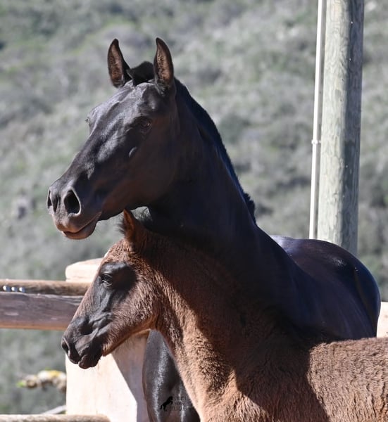 This 2018-born, purebred Menorquin mare lives the classic mare life on Menorca! According to tradition, only the stallions are ridden, and the mares live in herds on many hectares of land, enjoying life. If they are good mares, like her, they are also allowed to become mothers. She is therefore NOT ridden. Her magnificent foal from this year is NOT for sale but should still be shown so that her quality as a mother mare can be assessed. ;) The mare stands at 153 cm, which is not too tall, but she is beautifully baroque and well-built. Her foal at foot is now the second she has had, so it is still uncertain whether her foals will grow much larger as adults. She carries very old lines of the Menorquin that are increasingly disappearing, so it is wonderful that she contributes to the preservation of these original lines. She has been covered by a Menorquin stallion over 170 cm tall, who has Recomendado status for his performance at the breeding show and at local Doma Menorquina competitions. Without a doubt, a high-quality foal is growing in her belly, and for the price of one, you will have two in a few months. ;) The mare can also be transported without any issues while in foal! Of course, at her age, she can still be started under saddle. She is currently located in Menorca! Videos and pedigree available upon request. I would be happy to organize a veterinary check, training, transport, or your visit to see her in person. Details can be found on my page or discussed in conversation. Greetings from Spain!
