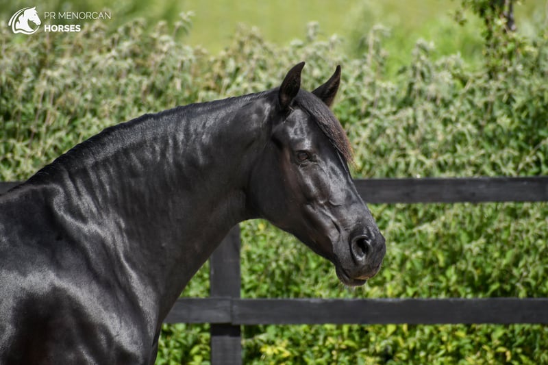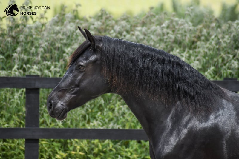 Merrie Pura Raza Menorquina geboren in 2018, volledig zwart en met een schofthoogte van 160 cm. Afkomstig uit oude lijnen met kampioenen van het ras. Geschikt voor de fokkerij, heeft drie keer gefokt en is een uitzonderlijke moeder. Met een solide basis in de dressuur, is ze licht bereden en is momenteel weer aan het werk. Ze reageert zeer goed op de longe en lange teugels. Ze heeft een gevoelige ruiter nodig die haar vertrouwen kan winnen: in het begin kan ze gereserveerd zijn, maar zodra ze je accepteert, geeft ze zich volledig. Ze is gemakkelijk te hanteren: ze laat zich pakken, leiden, laden in de trailer, vastbinden, wassen en is goed met de smid. Gewend aan de loopband, kan ze zowel in de stal als in de vrijheid leven, en past ze zich perfect aan het leven in een groep aan (met merries of gecastreerde paarden). Sociaal met honden en boerderijdieren. Ideaal voor wie op zoek is naar een nobele, veelzijdige merrie met grote kwaliteiten, zowel als fokmerrie als werkpartner. Gelegen in Kent, Verenigd Koninkrijk – Vervoer en beheer internationaal beschikbaar. Neem contact met ons op voor meer informatie of om een bezoek te plannen. Groeten!