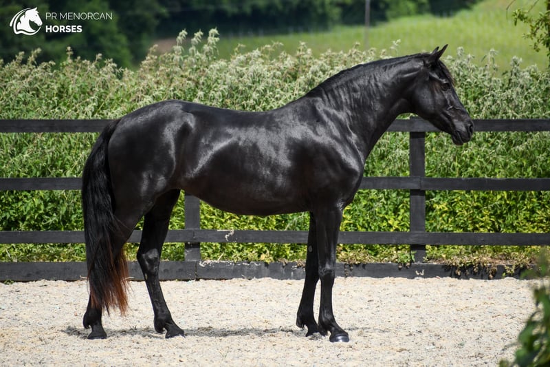 Jument Pura Race Menorquina née en 2018, entièrement noire et mesurant 1,60 m au garrot. Issue de lignées anciennes avec des champions de race. Apte à la reproduction, elle a déjà eu trois poulains et est une mère exceptionnelle. Dotée d’une base solide en dressage, elle a été monté légèrement et reprend actuellement le travail. Répond très bien à la longe et aux longues rênes. Elle nécessite un cavalier sensible qui sait gagner sa confiance : au début, elle peut être réservée, mais une fois acceptée, elle se donne entièrement. Facile à manipuler : elle se laisse attraper, guider, charger dans une remorque, attacher, brosser, et elle est bonne avec le maréchal-ferrant. Habituée au tapis de marche, elle peut vivre aussi bien en box qu’en liberté, et s’adapte parfaitement à la vie en groupe (avec des juments ou des hongres). Sociable avec les chiens et les animaux de la ferme. Idéale pour ceux qui recherchent une jument noble, polyvalente, et dotée de grandes qualités aussi bien comme reproductrice que comme partenaire de travail. Située dans le Kent, Royaume-Uni – Transport et gestion disponibles à l’international. Contactez-nous pour plus d’informations ou pour organiser une visite. Cordialement !