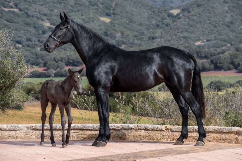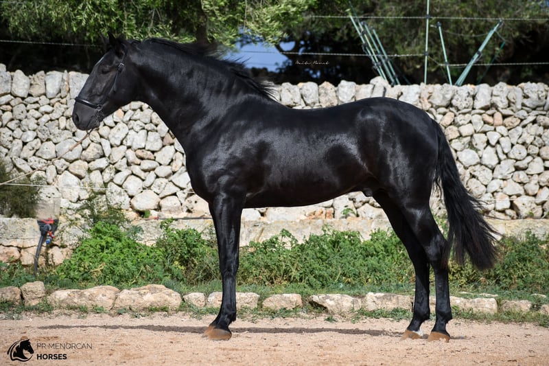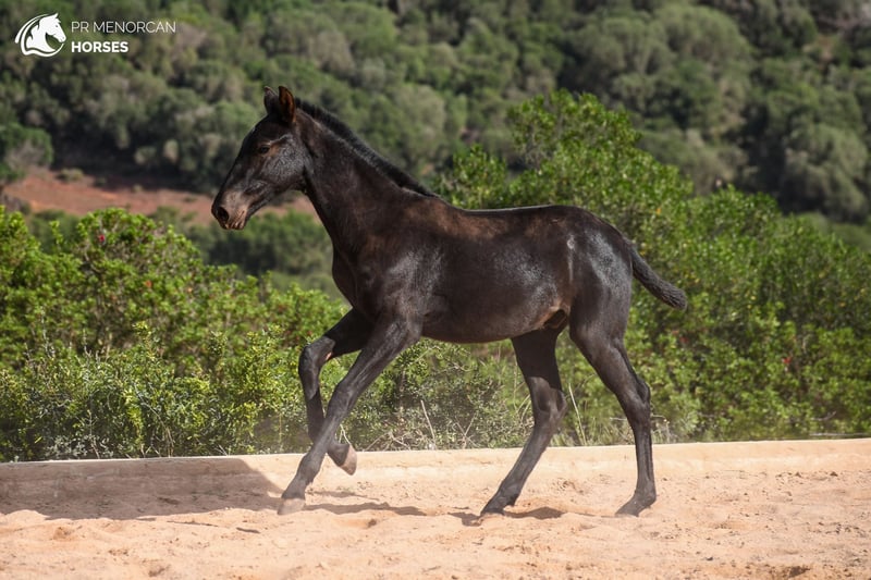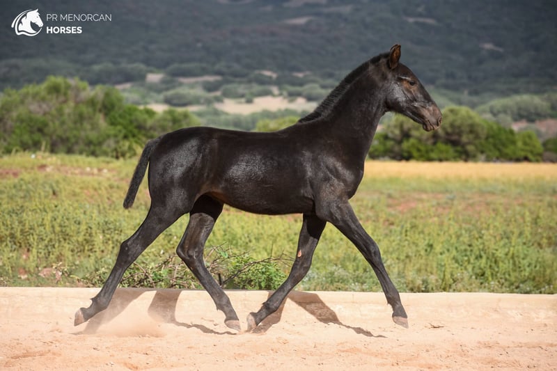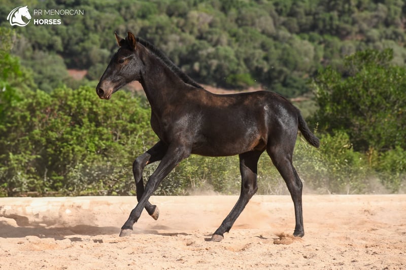 his Athletic Purebred Menorcan Colt Could Be Yours! ✨ Elegance, Champion Bloodlines, and Tremendous Potential ✨ Introducing a Purebred Menorcan colt born in March 2024, jet-black with a small white star on his forehead. Estimated to reach around 160 cm at full growth, this colt boasts outstanding champion lineage on both sides, plus one of the only three ELITE stallions in his pedigree. He could be a fantastic choice as a breeding stallion or for working equitation, driving, or simply as a loyal trail companion. In the two last pictures you can see the dam and sire. With a mother awarded for morphology, and the influence of an ELITE stallion, he brings excellent pedigree and versatility in a variety of disciplines. An independent young colt, comfortable with people and currently starting his basic training. He is halter-trained, picks up all four feet, stands tied, and is accustomed to showers. He lives in a paddock with another young colt, learning social skills and building strength, and is also well-adjusted to stall life. Regularly dewormed and well-prepared to advance his training. We can organize a pre-purchase exam, handle all documentation and can arrange transport worldwide. Contact us for more information and videos Located in Menorca. DM for details!