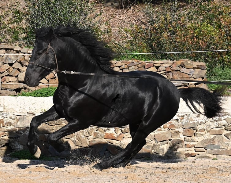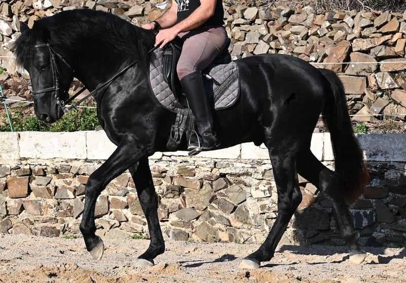 Ecco la traduzione in italiano del testo, conforme alle linee guida fornite: --- Questo stallone Menorquín, nato nel 2022, è davvero un tesoro dal cuore grande. È estremamente coccolone, rilassato e, nonostante la giovane età, si dimostra già un cavallo affidabile sotto la sella. Una vera rarità, perché a quell’età ci si aspetterebbe già qualche capriccio da puledro. Che si tratti di trattori, camion, cantieri, pozzanghere, fuoco o mare, attraversa tutto senza muovere le orecchie (video disponibili!). Sotto la sella, possiede una buona base di lavoro e si sta già iniziando a lavorare al galoppo partendo dal passo. Essendo così tranquillo e attento, impara molto rapidamente. In campagna si comporta bene e, nonostante il terreno molto roccioso, si muove senza problemi anche senza ferrature. Al lungo rein, si muove in modo molto rilassato nel quadrato, riflettendo il suo carattere docile. È cresciuto nel branco di stalloni in stabulazione robusta, quindi è molto ben socializzato. Da alcune settimane è stato messo in stalla, poiché il clima a Minorca è diventato molto avverso, e ora viene allenato regolarmente per la vendita. Anche nel rapporto con le persone è molto tranquillo, sia quando viene spazzolato, si puliscono gli zoccoli, si conduce (anche passando accanto ad altri cavalli), sia durante le operazioni di selle e briglia. È così ben messo che sembra molto più vecchio. Poiché il suo altezza al garrese di 152 cm è inferiore alla misura minima richiesta per i stalloni (154 cm), il breeder lo cede a un prezzo molto conveniente! C’è la possibilità che cresca ancora abbastanza da poter essere successivamente approvato (misura minima 154 cm), anche se il breeder ha in mente obiettivi di selezione più ambiziosi. A Minorca, gli stalloni vengono tradizionalmente impiegati nelle feste locali, ma, secondo il veterinario del breeder, il suo tono è molto discreto, quindi anche questa opzione non viene preferita. Si tratta di un cavallo di Classe 1, il che significa che può autoregolarsi da solo man mano che acquisisce più resistenza! Questo non influisce in alcun modo sul suo lavoro, e ho anche realizzato video e registrazioni audio per poterlo dimostrare. Per questa serie di dettagli, viene venduto a un prezzo estremamente vantaggioso rispetto alle attuali quotazioni dei Menorquín. Se non si desidera mantenere uno stallone, è ovviamente possibile procedere alla castrazione sul posto. Un vero tesoro a un prezzo sensazionale! La sua sede è a Minorca. Video e pedigree disponibili su richiesta. Posso organizzare una visita con esame veterinario (AKU), addestramento, castrazione, trasporto o anche il vostro viaggio, qualora vogliate venire di persona a vederlo. Dettagli disponibili sul mio sito o in colloquio. Saluti dalla Spagna