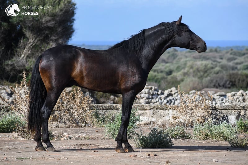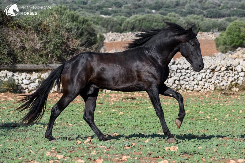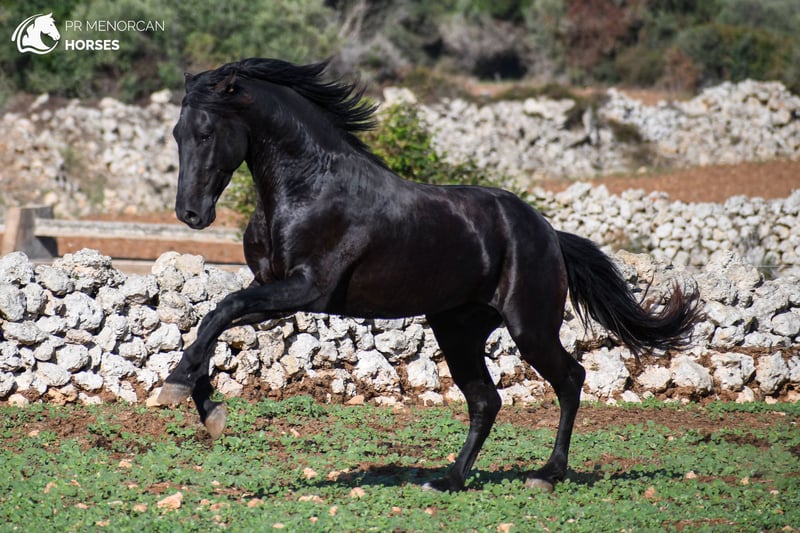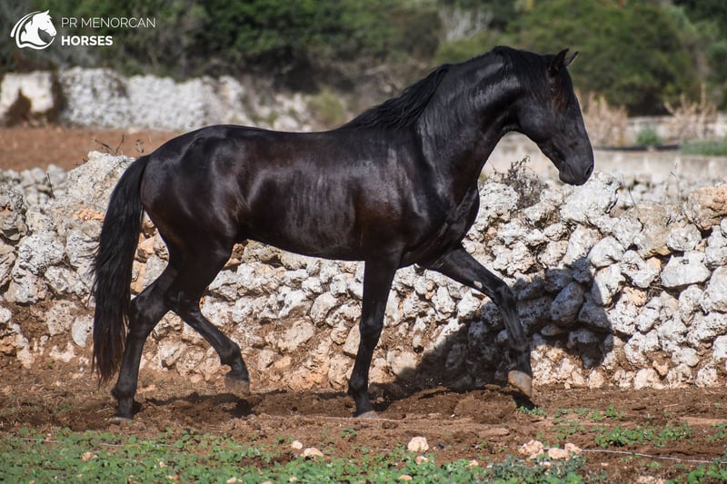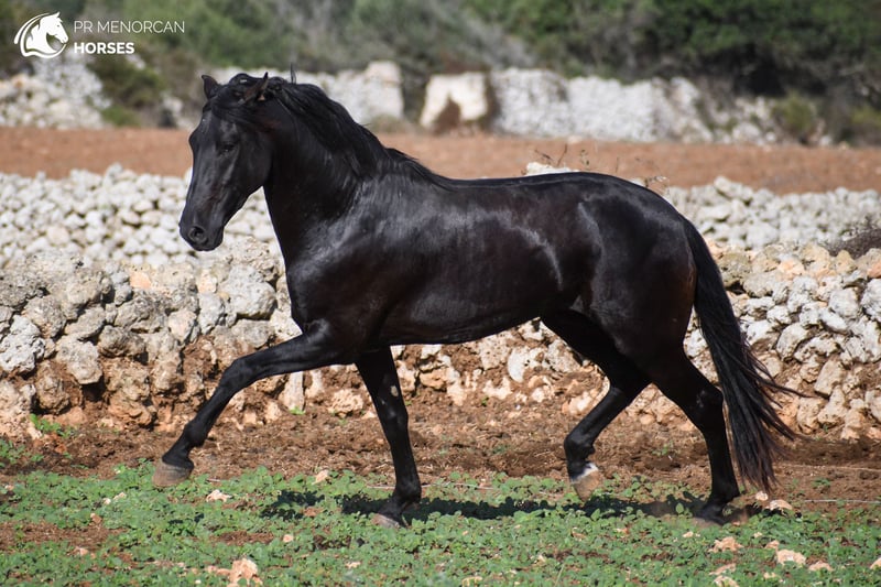 his beautiful and compact Purebred Menorcan stallion, born in 2021, could now be yours! With his black coat and just a small white marking on his right hind foot, he truly stands out. He currently stands at around 155 cm, and may still grow slightly until he reaches six years of age. The only reason his current owner is offering him for sale is due to his height, as they require a significantly taller horse. His pedigree includes renowned names such as Lester, Olivaret, and Dubin. While he could be assessed as a breeding stallion, he can also be gelded prior to transport if preferred. He has recently started under saddle with basic flatwork at the walk, trot, and canter, both in the arena and outdoors. He also works nicely in long reins, picks up his feet well, and loads easily into the trailer. This stallion is no spooky and energetic, making him a great option for trail riding, working equitation, or driving. He currently lives stabled with access to a paddock, alongside other stallions, and can also be turned out in a securely fenced paddock. Regularly dewormed Vet check, paperwork, and worldwide transport can be arranged Located in Menorca If you think he might be the right horse for you, don’t hesitate to get in touch. You're welcome to come visit him in person — or we can handle the entire process online. Contact us for more information and videos! Best regards!