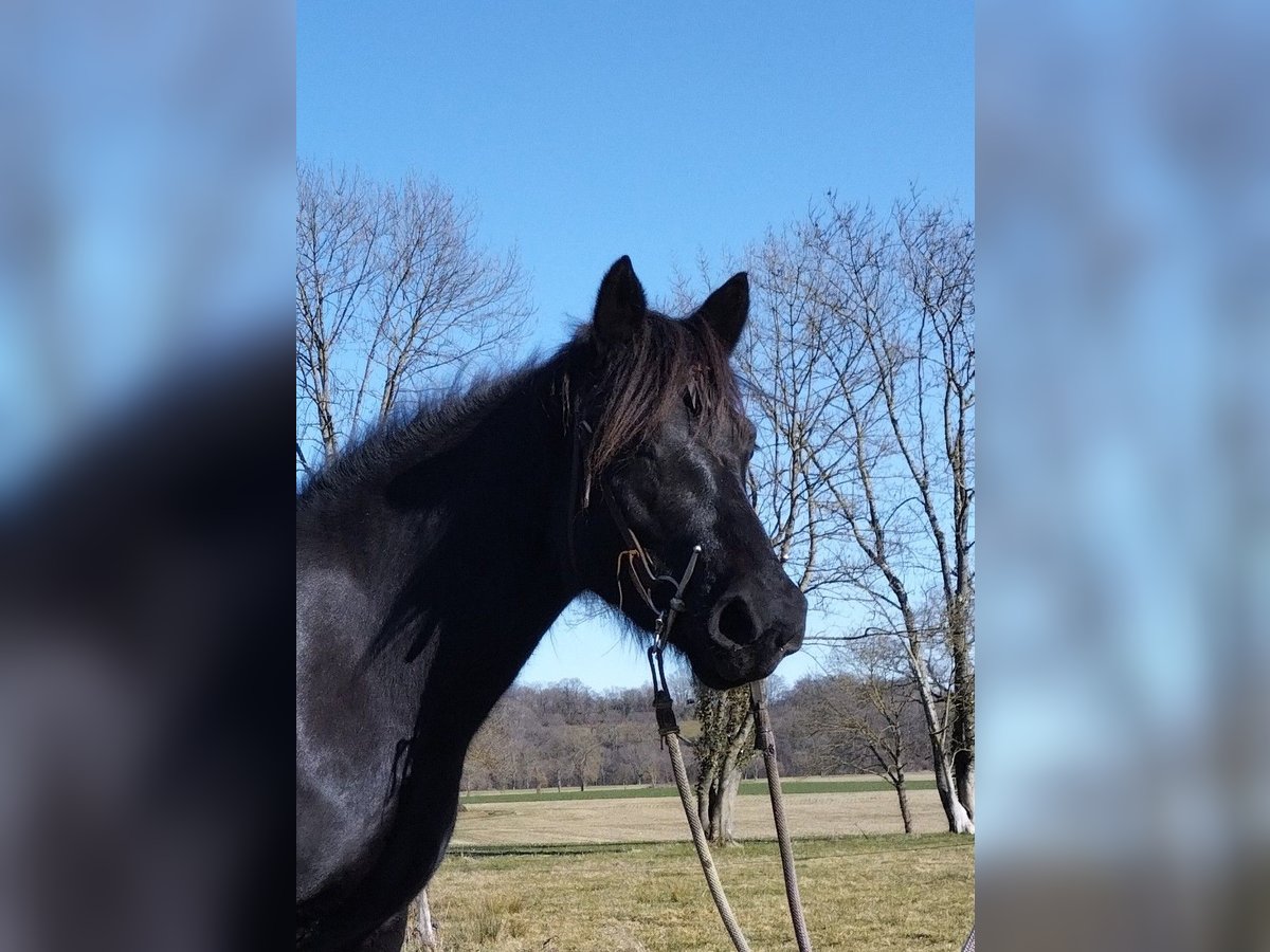 Nobile cavalla gravida con grandi promesse, che sta progredendo rapidamente sia in carriera che in esterno. Bella linea del collo e andature eleganti, tra cui un passo deciso in passeggiata. Addestrata con fiducia, in fase di apprendimento dell’equilibrio, del rispetto reciproco e della leggerezza. Spontaneo equilibrio interessante, buona muscolatura del garrese e buona impulsione. Autonoma in esterno, con passo sicuro, a suo agio nell’ambiente. Incluso un accompagnamento professionale per garantire la trasmissione dei codici e/o fornire una formazione adeguata al nuovo proprietario. È cresciuta in montagna, in branco. In regola con le cure di routine, dentista, osteopata, ferratura, sverminazione. Zoccoli nudi.