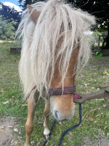 Verkaufe hier einen lieben Mini Wallach der keine Unarten hat. In toller Farbe mit Aalstrich. Er ist 2j alt, hat vollen Stammbaum. Er hat 2 Pflegemädchen die ihn putzen betüddeln. Spazieren gehen, kuscheln, Hufe geben putzen alles kein Problem.