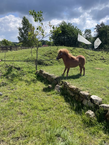 Masou ist auf der Suche nach einem neuen Zuhause. Der bald dreijährige, kräftig gebaute Wallach, welcher letzten Herbst kastriert wurde, ist ein überaus gut motivierbares Pony. Masou kennt selbstverständlich Hufschmied, Tierarzt und den alltäglichen Hofalltag. Er kennt alleine spazieren im Gelände, war schon mit zu 2 Trailkursen, auf denen er verschiedene Hindernisse kennengelernt und auch die Anfänge der Freiarbeit gezeigt bekommen hat, welche er sehr schnell umsetzen konnte. Er kennt es mit Hengsten zu laufen, ebenso lief er aber auch nach der Kastration schon Wochenweise mit den Stuten, beides stellt für ihn kein Problem da, da er sehr sozial ist. Masou ist einfach ein Schatz im Umgang und sucht jetzt jemanden mit einer Aufgabe für ihn. Masou wird nur in Shettygesellschaft vermittelt und für ihn gilt Platz vor Preis. Einziges kleines Manko, was ihn aber nicht einschränkt, er hat eine kleine Fehlstellung an den Zähnen und muss aber, laut meinem Pferdezahnarzt nicht öfter zum Zahnarzt, als gesunde Pferde. Bei Fragen oder Interesse gerne unter WhatsApp melden: 015224359033 Mit freundlichen Grüßen Katharina Löcken