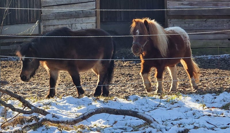 Con mucho pesar, debido a la falta de tiempo por motivos laborales y escolares, vendemos a nuestros dos ponis. Sería ideal que pudieran quedarse juntos. Mara, yegua, 10 años Toby, semental, 4 años Ambos son revisados regularmente por el herrador y no tienen cojera; además, están en buena forma y nunca han estado enfermos con nosotros. Ambos tienen un pasaporte sin pedigree. Conocen pasear, hacer trabajo en la cuerda y jugar, pero no han sido montados ni conducidos en carro. ¡Prioridad absoluta al espacio sobre el precio! El precio de 500 € es por los dos juntos.