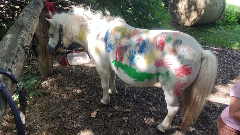 Polly is a small, typical pony, a theoretically white mare, approximately 17 years old, standing about 95 cm tall. I am only placing her in the best hands, where it simply fits. Ideally, I would like to rehome her together with Floh, as they get along very well. This is not an emergency sale! I am only offering her because my children have become too heavy for her, and she now mostly stands around unused. Polly is a classic pony that one must truly appreciate. Sometimes a bit sassy and moody, but she loves walks, and is comfortable lunging on a simple or double lunge line, knows long reins, a lunge line with a sleeve, and pulling a sleigh while being led. I originally wanted to start her under saddle, but despite planning to do so for the past four years, I haven't found the time and realistically don't think I will. However, I can very well imagine her being driven in a carriage. As a children's pony, she is fantastic! Easy to handle, groom, decorate, and ride while led. She is mostly relaxed (except around tractors). Please contact me for further details if interested.
