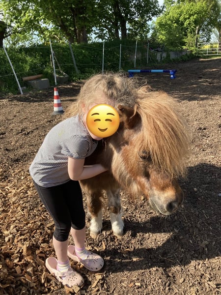 Wegen Hobbyaufgabe suchen wir einen neuen Möhrchengeber für unsere Shetty Stute. Geboren 4/2003. Sie wurde von uns als Beistellpony angeschafft. Sie ist jedoch eingefahren und besitzt auch ein Kutschgeschirr. Da wir keine Ahnung vom Kutsche fahren haben, ist das bei uns leider nie gefördert worden. Jedoch hatte die kleine Maus sehr viel Spaß den Schlitten zu ziehen ;-) Sie darf wegen einer Rehe vor 4 Jahren nur noch stundenweise auf die Wiese. Kommt damit auch gut zurecht und ist seitdem beschwerdefrei. Mit Stuten kommt sie ebenfalls gut zurecht und sie ist zaunsicher. An und für sich ist sie ein typisches Mini . Frech, fordernd, dickköpfig, verfressen… aber eben auch witzig, kuschelig, mutig und treu. Sie kennt offenstall und geht nachts auch gerne mal in die Box. Ist immer geimpft und entwurmt worden und auch der Hufschmied hatte mit ihren Minifüßchen regelmäßig ihren Spaß. Beim Schmied ist sie ganz brav. Wir wünschen uns ein ganz tolles zu Hause für unsere kleine Maus. Deshalb: !!!Platz vor Preis!!!!!