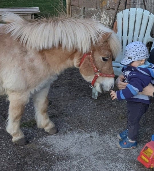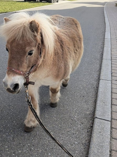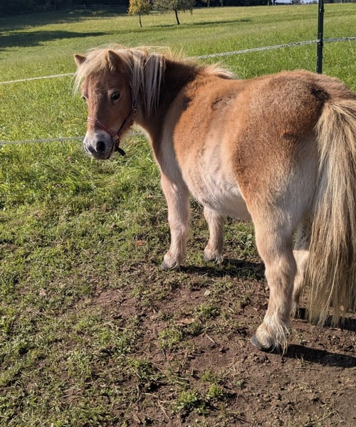 Shetty Stute, Stockmaß 85 cm, 6 Jahre, gechipt & Pass vorhanden, gesund, zaunsicher, geht gut in Hänger, kinderlieb. Wir verkaufen die wirklich zuckersüße Maus nur aufgrund Bestandsverkleinerung und weil sie einfach ein bisschen zu kurz kommt hier und absolut zu schade ist zum herum stehen! Daher suchen wir einen passenden Platz mit Shettygesellschaft und Beschäftigung. Sie kann nämlich auch kleine Kunststückchen und würde sich freuen noch mehr davon weiter zu lernen. Sie wurde beim Vorbesitzer auch gefahren, was sie sehr gerne machte und sich auch hier freuen würde wieder zu fahren, bekommt auch ihr Fahrgeschirr und Trense mit. Kleinere Kinder konnten sie ebenfalls auch geführt reiten. Sie ist ein absolut liebes Pony zum spazieren gehen, Joggen, Bodenarbeit/ Zirkuslektionen und Sulky fahren. Darf 24 Stunden auf die Weide. Wir geben sie wenn's passt gerne her, ist aber kein "Muss"verkauf. Wer also ein richtig tolles Shetty sucht, und geeigneten Platz hat, darf sich sehr gerne melden. Preis ist inklusive Geschirr und Trense.