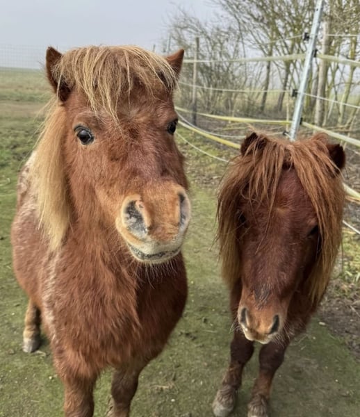 Mini Shetland Pony – Stallion, born 2023 This adorable Mini Shetland Pony stallion is the perfect companion for a small family or an experienced pony enthusiast seeking a charming and hardy leisure pony. Born in 2023, he impresses with his friendly temperament and compact size. Standing at just 75 cm (approximately 11.3 hands), he is ideal for children and beginners who want to learn handling and riding in a safe and loving environment. His dark-foxy coat gives him a particularly appealing appearance and makes him a real eye-catcher. Despite his small stature, he has a sturdy build and is well-suited for recreational riding. He was raised with care and is already well-broken and familiar with daily handling. This Mini Shetland Pony stallion is a reliable partner for those looking for a small but fine leisure pony. It is a wonderful opportunity to acquire a young, well-behaved stallion in a loving environment. For more information or to arrange a personal impression, we look forward to your contact. We would prefer to rehome Freddy together with his buddy Spotty (see other listing). In this case, the price is of secondary importance. However, the two are not being given away for free.
