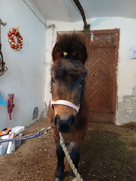Mini Pony sucht neues Zuhause Ich verkaufe meinen Mini Hengst Emil Er wird 3 Jahre alt und leider passt er nicht mit meinen anderen Bub zusammen. Er zeigt sich sehr gut beim Longieren und hat sehr viel freude an Stangenarbeit Emil gibt seine Hufe brav und liebt es geputzt zu werden. Steht bei mir in Cross ties oder normal angehängt und schläft dabei immer ein Mehr Infos und Videos/Bilder gerne per PN oder WhatsApp unter +43 677 6140 1834 Papiere vorhanden Standort 9563 Kärnten