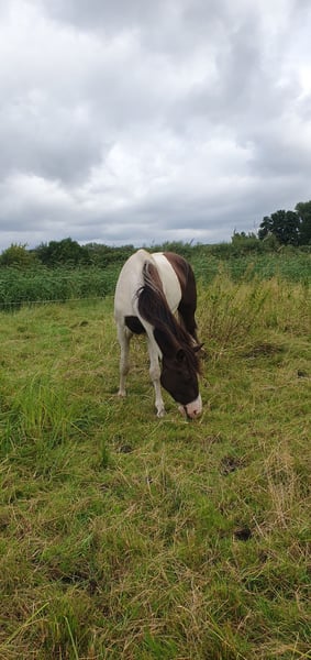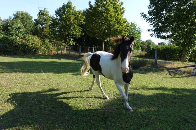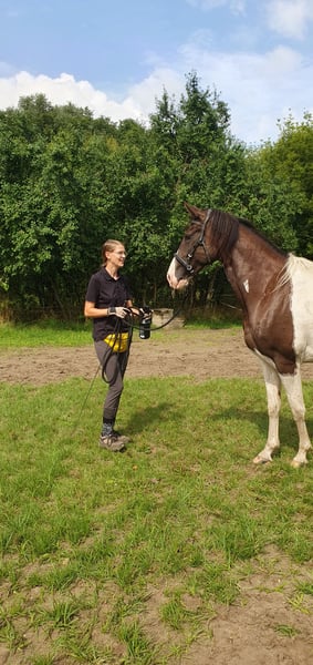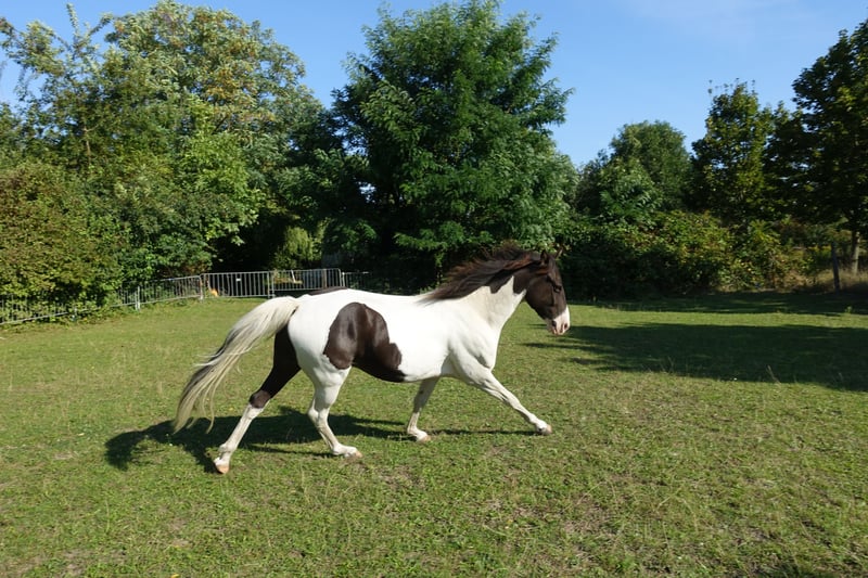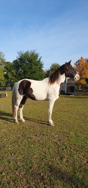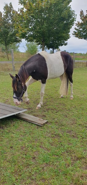 Liebe Pferdemenschen, ich verkaufe einen traumschönen Missouri Foxtrotter in der seltenen Farbe Rappisabell-Schecke. Stockmaß aktuell 155 cm, 5 Jahre alt, noch ungeritten und allerbestens aufgezogen. Pawnees Bela K.R. stammt aus bester Zucht (rote Papiere vom Bayrischen Zuchtverband) und hat eine so feine Ausstrahlung und so schönen Seele, dass ihm die Herzen zufliegen - er ist ein total liebes, verschmustes, super freundliches und sehr menschenbezogenes Pferd, souverän, neugierig, verspielt und lustig. Bela blieb über ein Jahr mit Mama in seiner Herde, stand danach noch mit „Tanten“ und seinem Halbbruder zusammen, mit dem er aktuell immer noch in einer größeren gemischten Herde steht, so dass er keinerlei Absetzungs- bzw. Trennungstraumata erlitten hat. In der Herde ist er umsichtig, eher rangniedrig, verspielt und ein Gentleman den Stuten gegenüber. Bela ist absolut zaunsicher. Er wird top gepflegt und ernährt, wurde stets entwurmt und jährlich im Frühjahr komplett durchgeimpft, auch WNV. Er hat dichtes glänzendes Fell, aktuell süßen Winterplüsch und braucht keine Decke. Als 2-Jähriger wurde er kastriert und hat laut Tierärztin gute Hufe und super Zähne - die Wolfszähne wurden im Sommer 2024 gezogen. Er ist von robuster Gesundheit und war stets absolut gesund. Vor gut einem Jahr haben wir mit Unterstützung einer lizensierten Gangpferdetrainerin mit Bodenarbeit begonnen und ihn auch behutsam an das ganze Equipment, das Satteln und Aufsitzen gewöhnt. Bela liebt die Freiarbeit, lernt sehr schnell und folgt extrem gut, reagiert ganz fein auf alle Signale und „liest“ die Gedanken und Gefühle seines Menschen förmlich. Er kennt ebenfalls Kappzaum, Langzügel, Longenarbeit nach Babette Teschen, aber auch Horsemanship Übungen, inspiriert von Jenny und Peer. Warten, Einsprühen, Hufe geben, in den Hänger gehen etc. wurde selbstverständlich eingehend beübt. Bela ist sehr motiviert mit „will to please“, kommt auf Zuruf, liebt Übungen, Spiele und seine Menschen. Laut zweier Trainerinnen ist er sehr ausdruckstark mit natürlicher sehr guter Selbsthaltung und ein begabtes elegantes Top Gangpferd mit geschmeidig schönen Gängen. Für das Herausreiten der Gänge braucht es dann Zeit und Training - Bela bietet einfach viel an. Da er so offen, fein und unverdorben ist, gebe ich ihn nur in allerbeste Hände und nur in Offenstallhaltung mit Artgenossen. Bela wird aus gesundheitlichen Gründen meinerseits verkauft. Ich freue mich auf ansprechende Zuschriften, mit herzlichen Grüßen