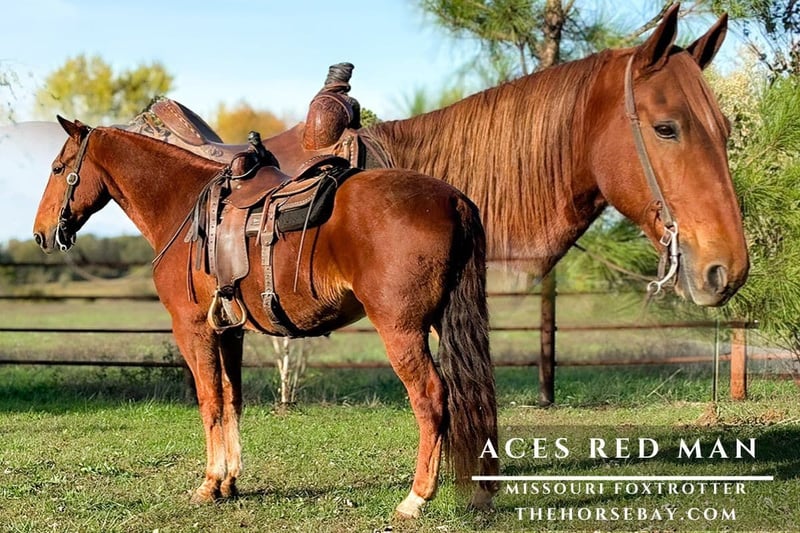 Meet Red Man, a stunning and experienced Missouri Foxtrotter gelding that is the ultimate trail partner and family horse. At a solid 9 years old and 15.3 hands, Red Man is in the prime of his life and ready for his next adventure with you. Red Man embodies the classic MFT temperament: gentle, quiet, willing, and incredibly reliable. He is known for his calm disposition and forgiving nature, which makes him an excellent mount for advanced beginner, intermediate, or even nervous riders looking for a confidence booster. He is responsive to cues but not reactive or spooky, making for a safe and enjoyable ride every time you saddle up. Red Man is a seasoned trail horse, perfect for navigating rugged terrain, crossing water, and handling various trail obstacles with ease and sure-footedness. He performs the signature smooth, four-beat fox trot gait, which minimizes bounce and keeps the rider comfortable on long rides. He also has a comfortable flat-footed walk and a collected, rocking-chair canter/lope. He has been on numerous overnight camping trips, in the mountains, and around various ranch machinery (tractors, side-by-sides, etc.) with no issues. He is traffic safe and comfortable riding out alone or in a group, leading or following. His stock horse build and intelligence make him well-suited for working cattle, a job for which he has experience. Red Man has Excellent ground manners; stands tied, loads and hauls well, bathes, and stands quietly for the vet and farrier. He gets along well with other horses in the pasture. Red Man’s is a true once-in-a-lifetime horse