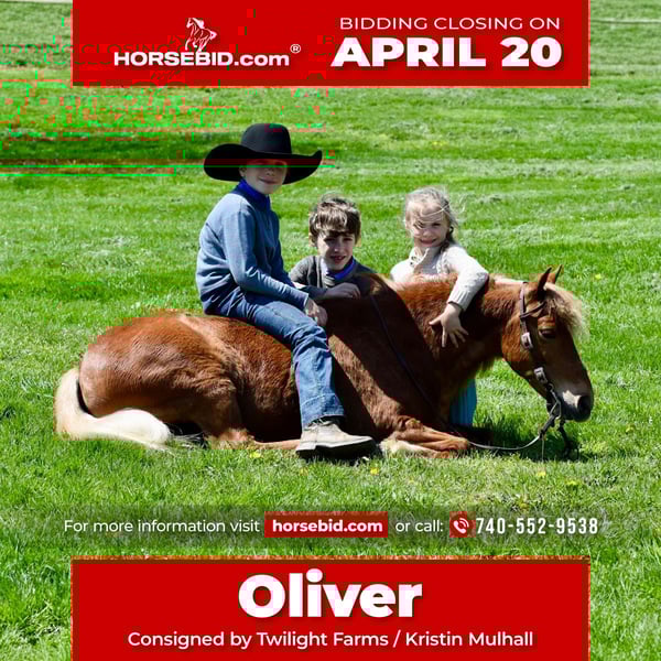 ⚜️𝐭𝐡𝐞 𝓔𝓵𝓲𝓽𝓮 𝐒𝐩𝐫𝐢𝐧𝐠 𝐂𝐥𝐚𝐬𝐬𝐢𝐜⚜️ Happening now thru MONDAY | APRIL 20th - Available EXCLUSIVELY on HorseBid's website! For more details and to register visit: www.Horsebid.com CONSIGNOR CONTACT: Twilight Farms / Kristin Mulhall 740-552-9538 LOCATION: Fresno, OH BREED: Pony REGISTERED: No REGISTERED NAME: Oliver COLOR: Chestnut HEIGHT: 11 AGE: 10 GENDER: Gelding Oliver is truly a once-in-a-lifetime pony. This 10-year-old, 44” (11 hand) chestnut gelding with a long, flowing mane and tail is the kind every family dreams about—and very few ever find. He is the pony that kids fight over to ride, the one they line up for, patiently waiting their turn because they know just how special he is. Oliver has safely taught multiple children how to ride and has a rare, natural ability to build confidence in even the most timid riders. He is gentle, patient, and forgiving, yet still fun and capable enough to grow with a child as they advance. What truly sets Oliver apart is his versatility and build. He is small and kind enough for the tiniest kids to safely enjoy, yet stout and strong enough to carry bigger kids and even go out with Dad to check cattle or rope. He is the definition of a “been there, done that” pony—the kind you can trust in any situation without a second thought. Around the farm and in the arena, there is truly nothing that phases him. The kids have stood on him, played games like tetherball, carried flags, tarps, and dragged jugs—he takes it all in stride without hesitation. He thrives in busy, chaotic environments and remains calm, steady, and reliable no matter what is going on around him. Under saddle, Oliver is well broke both English and Western. He carries himself in a natural, correct headset, has a soft mouth, and is responsive to cues without being overly sensitive. He walks, jogs/trots, and lopes/canters willingly, picks up his leads, and can be ridden with or without spurs. He is just as dependable in the arena as he is outside of it, making him a true all-around partner. Beyond riding, Oliver is also exceptionally well broke to drive. He is 100% traffic safe and has been driven extensively on busy roads, including large state routes with semis passing him head-on. He handles it all with complete confidence and composure. We trust him to be driven by the smallest of kids in traffic, yet he is strong enough to comfortably pull multiple adults as well. This is the kind of pony that is incredibly hard to find. Families will spend years searching and countless miles on the road trying to find one this safe, this broke, this versatile, and this fun for everyone to enjoy. Oliver truly does it all—and does it with a kind, willing attitude that makes him unforgettable. We stand behind Oliver and guarantee him in every way. Be sure to watch his full video to truly appreciate just how safe, steady, and special he is. Don’t miss your chance to own a pony like this—because there simply aren’t many like him.