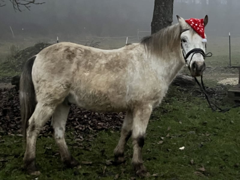 Unser Tigerscheck Wallach ist 10 Jahre und 1,39 m groß. Bolo ist im Umgang nett und kinderfreundlich. Er wurde gut geritten, kennt alle drei Grundgangarten in der Halle, auf dem Reitplatz und im Gelände. Bolo kennt verschiedene Übungen, wie Slalom, Stangenarbeit, Longe…. Er besitzt einen Equidenpass, ist gechipt und entwurmt. Ein Transport wäre möglich.