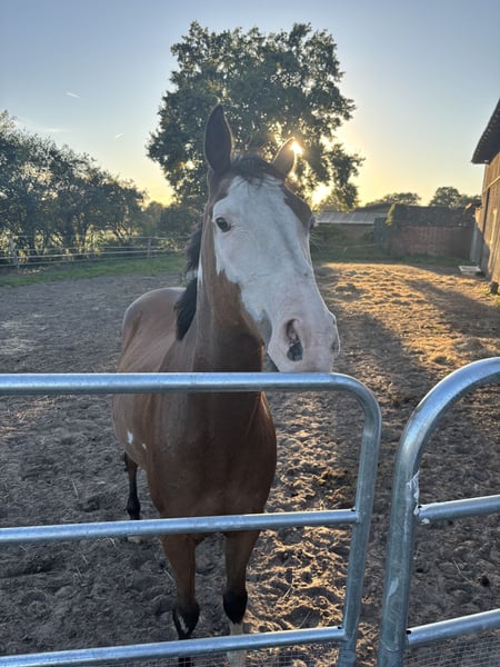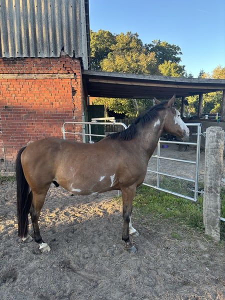 Hallo, Ich möchte meinen Wallach Toronto verkaufen: Alter: 11 Jahre Grösse: 150cm Rasse: Paint mix ohne Papiere Ich habe Toronto eigentlich für mich und meine Freundin gekauft… Leider ist die Beziehung nicht mehr und nun fehlt mir die Zeit mich langfristig um ihn zu kümmern, wie er es verdient. Derzeit steht er in einer Wallachherde bei uns am Haus mit Heu ad libitum und ist sehr rangniedrig. Zwischenzeitlich stand er auch in einer gemischten Herde - ohne Probleme. Er ist sehr unerschrocken und ein echtes Verlasspferd mit dem man schön entspannt ausreiten kann. Wir haben ihn auch dressur auf dem Reitplatz geritten und er geht fein an den Hilfen (gebisslos reiten oder mit Halsring funktioniert). Auch als Kinderpony und für Anfänger geeignet. Videos können gerne auf Anfrage versendet werden. Schermaschine und Schmied meistert er wie ein Profi. Derzeit ist er vollständig beschlagen, aufgrund unseres Ausreitgeländes. Bei passenden Umständen kann ich mir vorstellen, dass man das auch wieder reduzieren könnte. Verladen und Hängerfahren ist er gewohnt und unkompliziert. Er ist natürlich geimpft und regelmäßig dem Zahnarzt vorgestellt worden. Ernst gemeinte Anfragen gerne unter 015234009249.