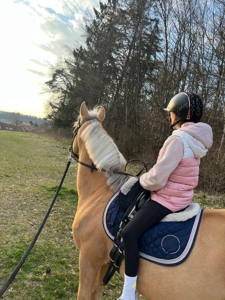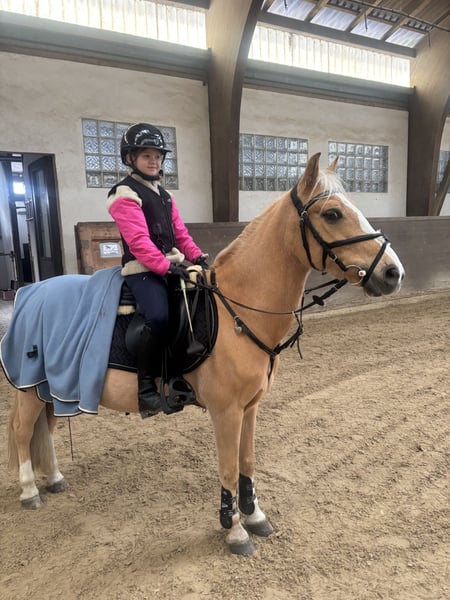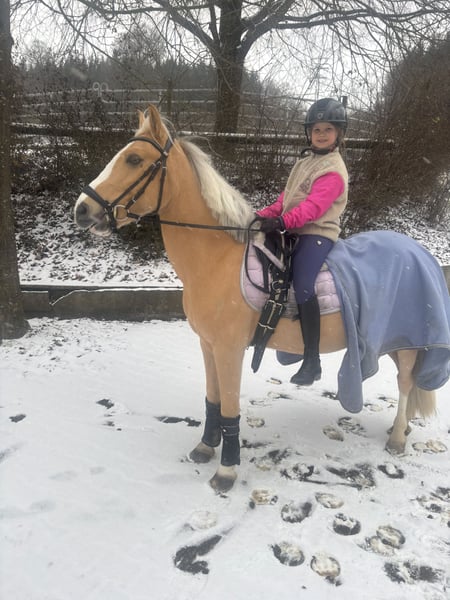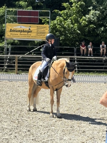 Absolut für jeden Spaß zu haben und von Kindern einfach zu Händeln. Goldy ist ein absolutes Goldstück, der nur in die besten Hände abgegeben wird. Er ermöglichte meiner Tochter den Einstieg in den Turnier Sport und war dabei immer eine Lebensversicherung. Goldy zeigt absolut keine Unarten und kann vom Anfänger bis Turnierreiter geritten werden. Platziert war er im Springen bis 70 cm. Und in der Dressur war er erfolgreich im E -Bereich unterwegs. Bei Interesse gebe ich gerne mehr Auskunft und verschicke Videos.