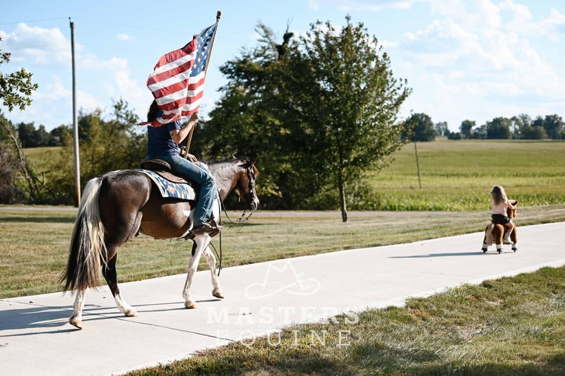 🍁𝒕𝒉𝒆 𝐅𝐀𝐋𝐋 𝑺𝒑𝒆𝒄𝒕𝒂𝒄𝒖𝒍𝒂𝒓🍁 Happening now thru MONDAY | SEPTEMBER 22nd - Available EXCLUSIVELY on HorseBid's website! For more details and to register visit: www.Horsebid.com CONSIGNOR CONTACT: Masters Equine 330-464-9758 LOCATION: Orrville, OH BREED: Quarter X Paint Pony REGISTERED: No COLOR: Paint HEIGHT: 14 AGE: 4 GENDER: Gelding Watch Video! Bubba is the kind of gelding that craves attention and loves to be around people. What I like most about him is his go-with-the-flow type of personality. He’s been arena ridden, has checked fence, and has plenty of outside miles under his belt. Versatile as they come, this classy-looking Paint gelding aims to please. With his size, disposition, and training, he would also make an excellent step-up pony for a youth rider ready to move on from a smaller mount. He does all of the obstacles- the teeter totter bridge, cowboy curtain, whips, tarps, gunfire, and flags are old news to Bubba. He has the brain of a horse twice his age and is very receptive to what is asked of him. Bubba is responsive to your leg and seat cues, with a fun turn around and a deep stop off your seat. While filming his video, we even took him over some small jumps for the very first time, and he handled them willingly and with ease. With his solid foundation and willing attitude, he could also be a great candidate for the english market. Bubba is a joy to have in the barn. He has been in both a stall environment and turned out on pasture with no bad habits. He is the perfect size for a rider with bad knees, as he is easy to get on and off, but stocky enough to carry almost any size rider comfortably. Pictures don’t do this cute gelding justice. He has good foot and bone, giving him the opportunity to have a long, successful career. He has been exposed to it all- farm machinery, equipment, road traffic, gunfire, deer, cattle- you name it. Bubba is sound and up to date on teeth, vaccines, coggins, and health papers. Since stepping foot on our property, he has been nothing short of a pleasure to work with. No matter what direction you want to go, this phenomenal gelding will be sure to take you there. He has all the buttons: side pass, turn around, leg yield, but can just as easily point and go. Gentle, flashy, and broke, with unlimited potential!