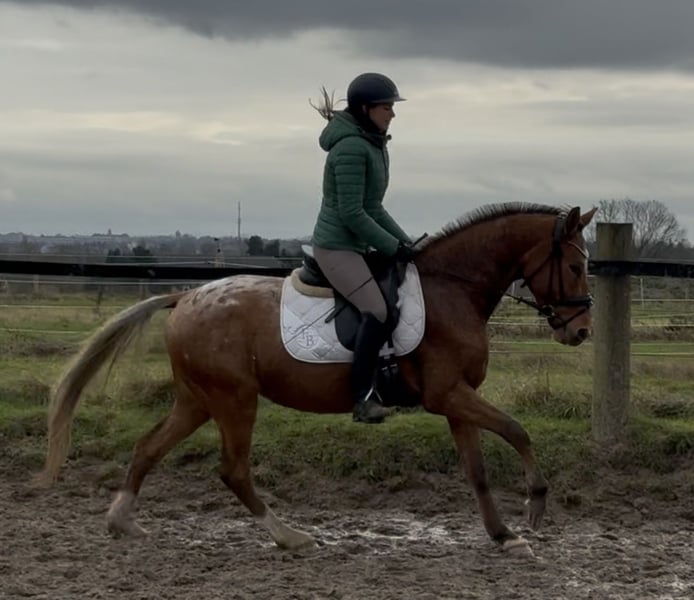 Super schicker fast 4 jähriger Wallach in begehrter Sonderlackierung sucht passenden Partner! Er deckt mit seiner Größe von 149cm super ab und ist auch für größere Reiter geeignet. (Reiterin 173cm) Lucky ist seit Anfang des Jahres angeritten und zeigt sich sehr gelehrig und artig unter dem Sattel. Auch im täglichen handling ist er sehr unkompliziert und ehrlich. Er macht seinen Job sehr gut und gibt einem jetzt schon ein sehr gutes Reitgefühl mit. Natürlich muss er noch weiter ausgebildet werden, die Grundsteine sind aber schon gelegt. Ich könnte ihn mir auch gut als Vielseitigkeitspferd vorstellen. Lucky hat ein angenehmes Gemüt und ist sehr kopfklar. Dennoch ist er kein Anfängerpferd! Jedoch für ambitionierte Reiter absolut geeignet. Videos und weitere Infos auf Anfrage. Abstammung ist Lando (Loverboy) x Camax L (Lewitzer x Westfale) Lucky hat sehr gute GGA und ist durchaus auch für den Sport denkbar!